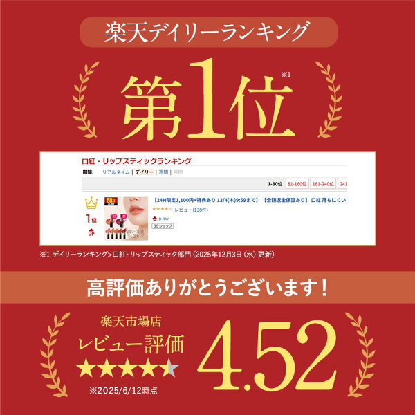 【大感謝クーポンで1238円】 【全額返金保証あり】 口紅 落ちにくい 保湿 リップ 【 ディーキス ルージュ 】 レッド ピンク アメジストローズ ブラウン オレンジ 透明感 長時間密着 5つ無添加 潤い ツヤ出し ひび割れ 乾燥 皮剥け 国産 送料無料