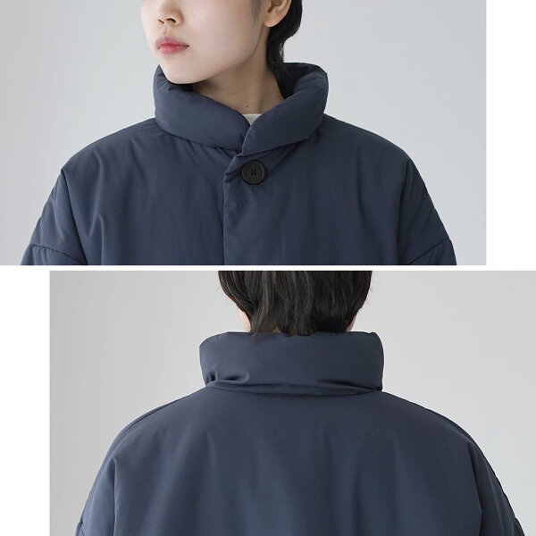 ふんわり立ち上がったスタンドカラーでお顔周りの華奢見せを実現。見た目のみならず、冷たい風から首周りをしっかり守る防寒性にも優れたデザインです。