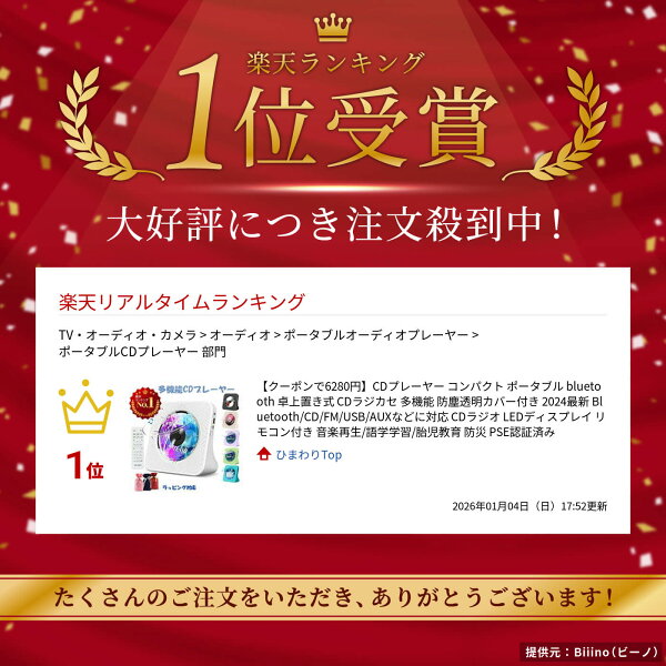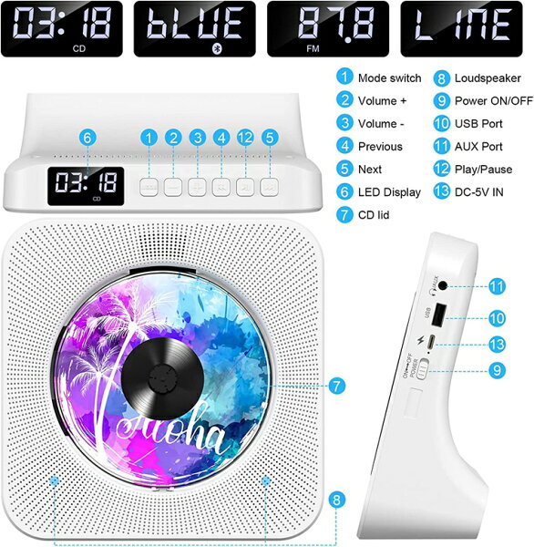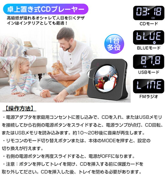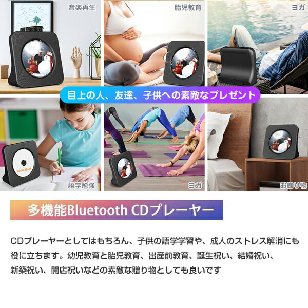 【クーポンで6280円】CDプレーヤー コンパクト ポータブル bluetooth 卓上置き式 CDラジカセ 多機能 防塵透明カバー付き 2024最新 Bluetooth/CD/FM/USB/AUXなどに対応 CDラジオ LEDディスプレイ リモコン付き 音楽再生/語学学習/胎児教育 防災 PSE認証済み