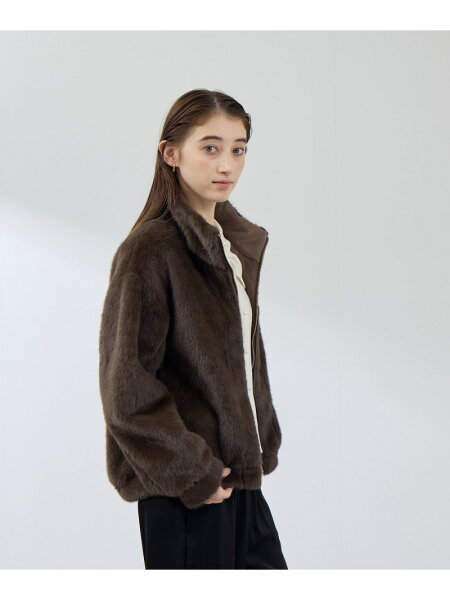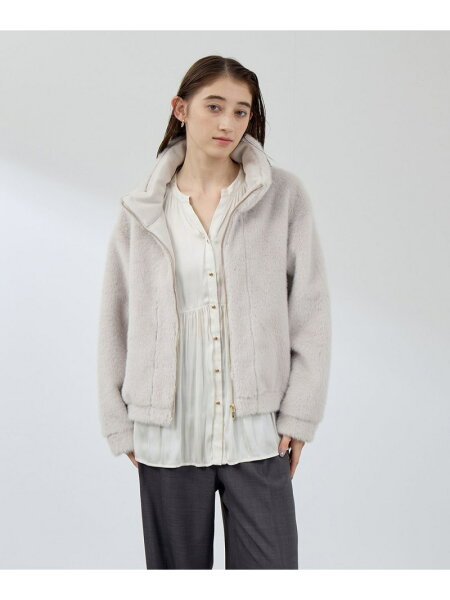 フェイクファームートンブルゾン QUEENS COURT クイーンズコート ジャケット・アウター テーラードジャケット・ブレザー ホワイト ブラウン【送料無料】[Rakuten Fashion]