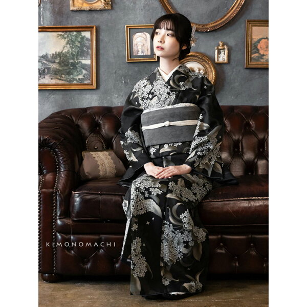 京都きもの町オリジナルブランド「KIMONOMACHI」の袷着物と京袋帯がセットになった、カジュアルな小紋の袷着物セットです。春・秋・冬にお召しいただけます。