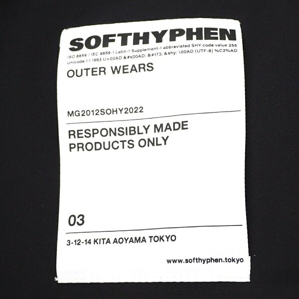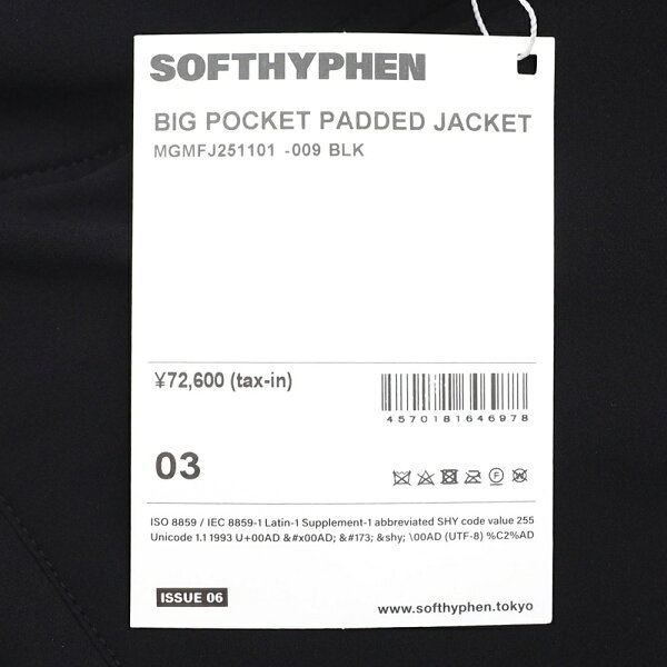 新品 SOFTHYPHEN BIG POCKET PADDED JACKET ジャケット 【サイズ:03】 ブラック PRIMALOFT ソフトハイフン メンズ 3WHC/J0660S/KCT07/HM