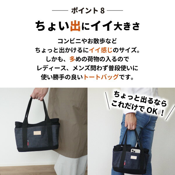 ・ちょっと出かけるのにイイ感じのサイズ。レディース、メンズ問わず普段使いに使い勝手のよいトートバッグ。