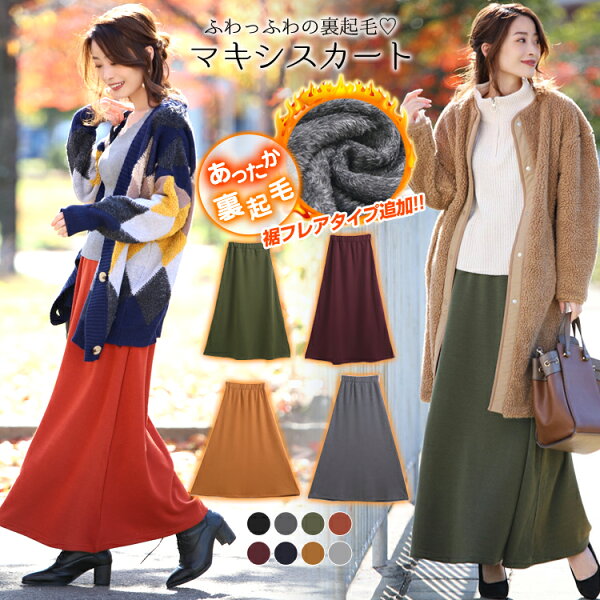 【最大60%OFFクーポン】楽天1位 裏起毛 マキシスカート 程よいフレア感を楽しむ大人可愛い 裏起毛 暖か マキシスカート 選べる2丈 ロング丈 マキシ丈 スカート マキシ丈 裏起毛スカート
