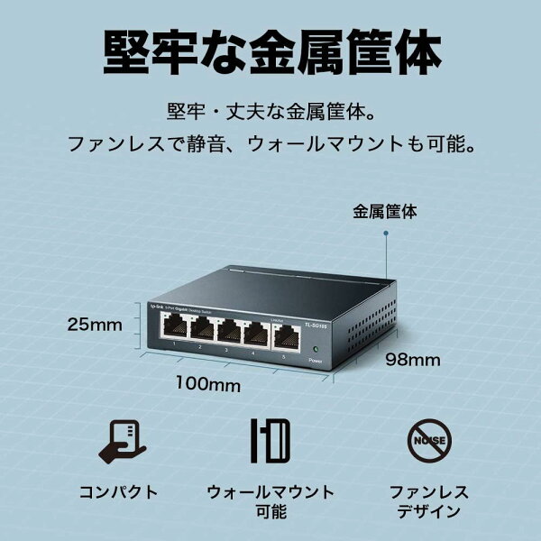 【楽天1位 無償永久保証】Giga対応10/100/1000Mbps 5ポートスイッチングハブ金属筺体TP-Link TL-SG105 最新バージョンv5