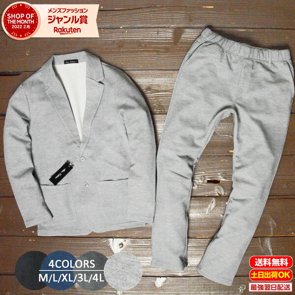 【10枚限定!1000円OFFクーポン】【裾上げ可】セットアップ メンズ 秋 スウェット テーラードジャケット 伸縮 ストレッチ 無地 シンプル ジャケット ビジネス カジュアル スーツ ゴルフ 上下セット【2万円以上で ロンハーマン タオル プレゼント】 M L LL 3L 4L