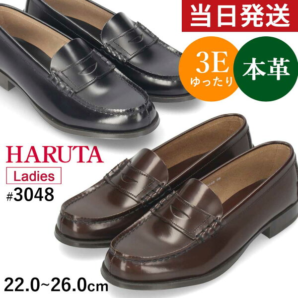 【初売り★クーポン発行中】 【ポイント11倍】 ハルタ ローファー 学生 レディース 本革 3E 3048 高校生 HARUTA 通学 靴 22cm-26cm 黒 ブラック クロ ブラウン 女の子 卒業式 入学式 発表会 セレモニー スクール コインローファー 定番 【サイズ交換OK】