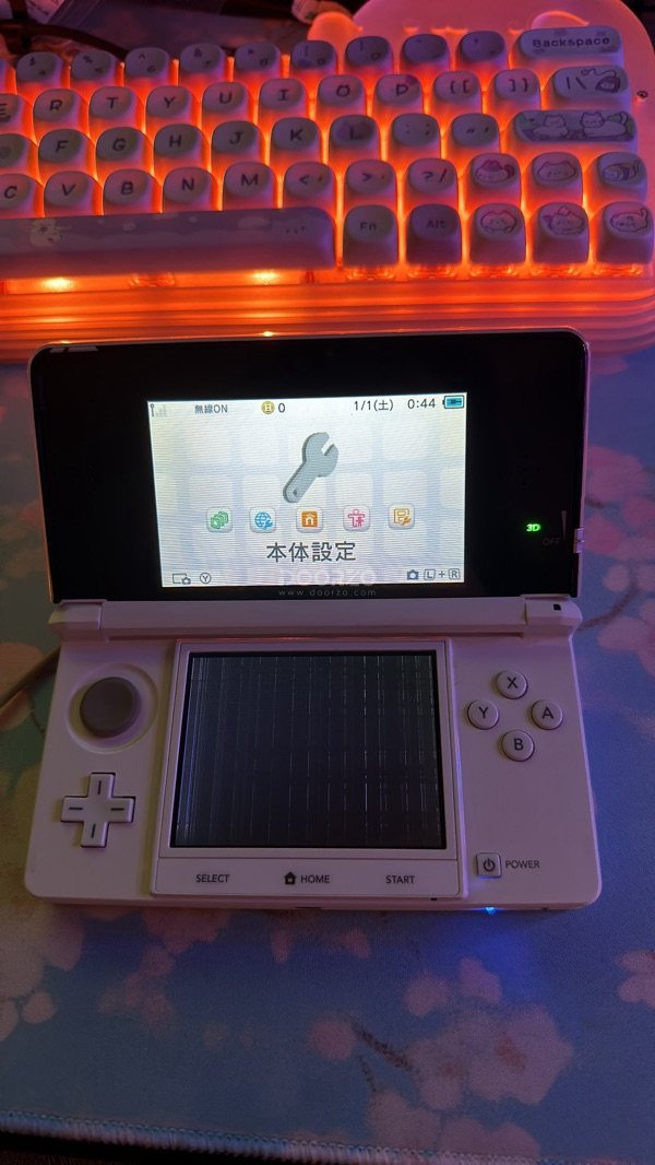 i was very dissapointed in this console.. when i had turned it on the bottom screen was not doing so good. and it was stated that it was working and i can tell from the pictures they had given me the completely wrong console. (i had fixed it but the last picture is from it being broken)