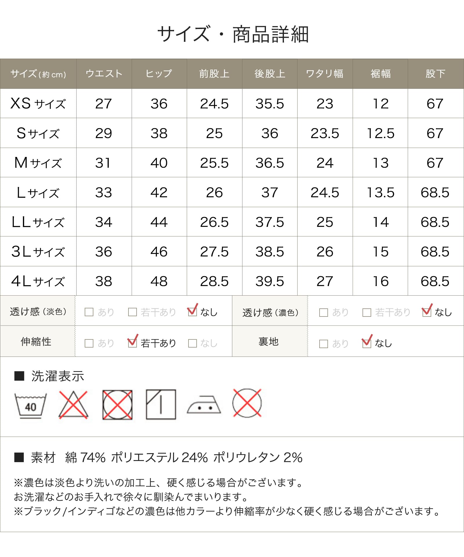 | 素材構成: | 綿74%,ポリエステル24%,ポリウレタン2% |