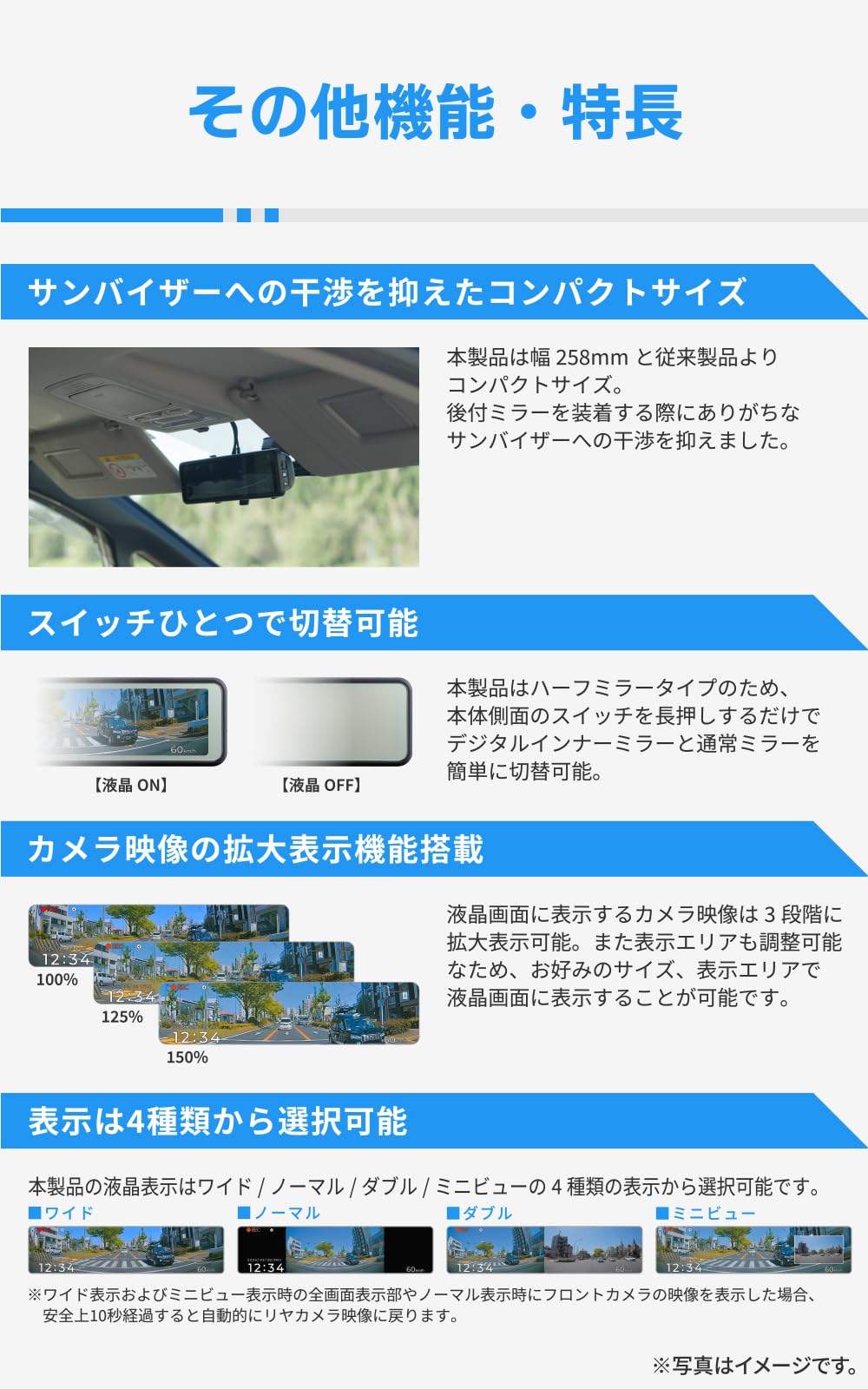 ― 見えにくい後方視界をリヤカメラの映像でミラー全面に表示可能 ―