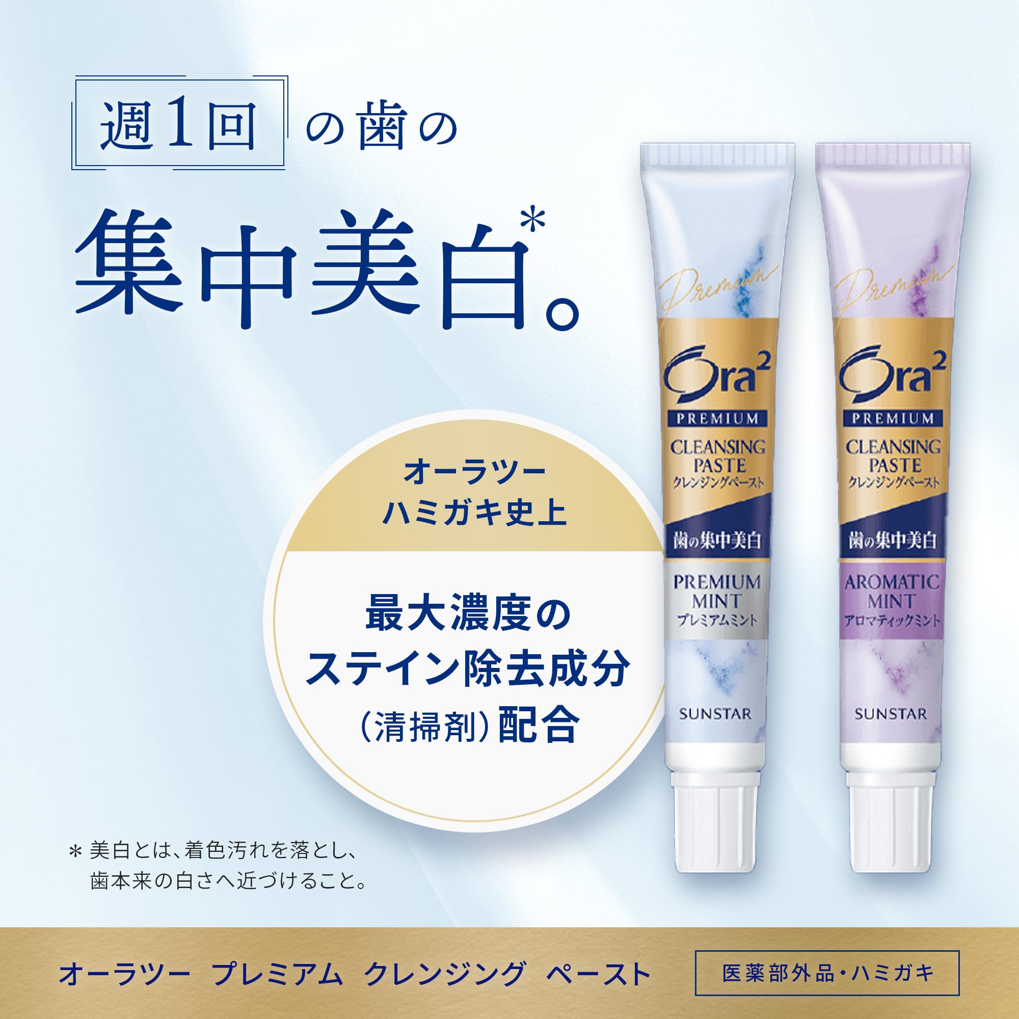 | 商品の利点: | オーラ2歯磨き粉史上、最高濃度のステイン除去成分(清掃剤)を配合。週1回の特別なケアで、頑固なステイン(着色汚れ)やニオイのもとまですっきりディープクレンジングできます。効能:歯を白くする・ヤニをとる・歯石の沈着を防ぐ |