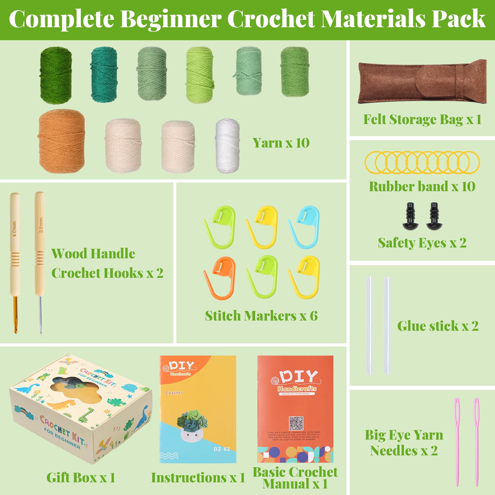 | 付属コンポーネント: | 説明書、かぎ針編み糸、かぎ針編みフック、ステッチマーカー、縫い針、通し、ストレートピン。 |
