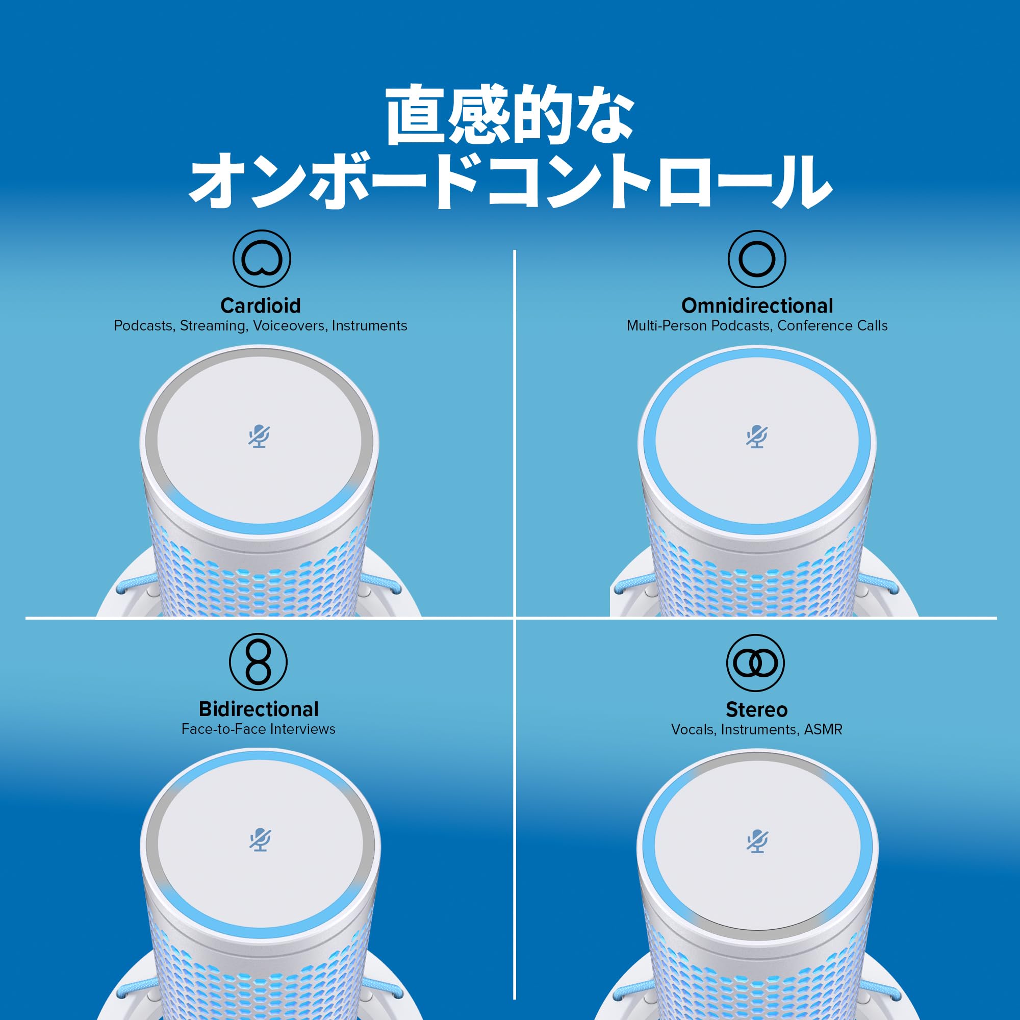 | 指向パターン: | 単一指向性、全指向性、双指向性、ステレオ |