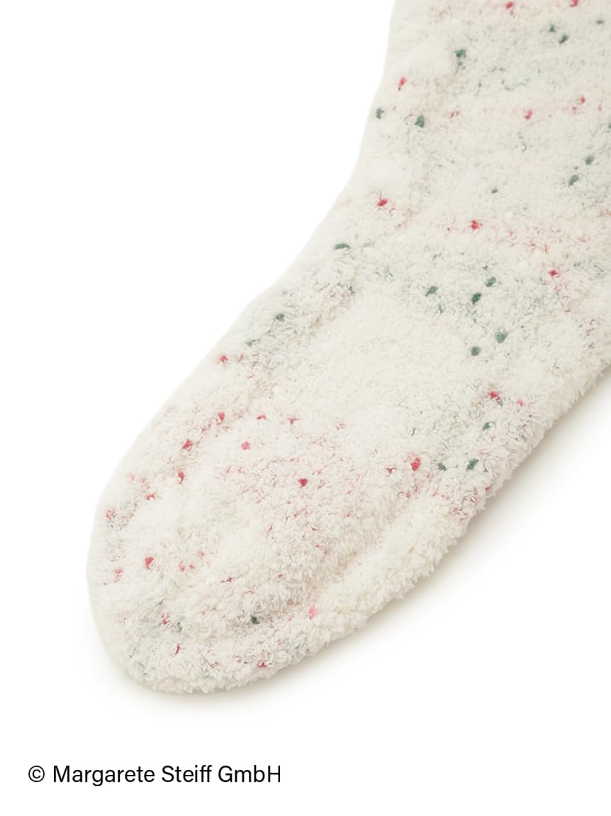 【Steiff・『55PB』のサガラ刺繍を入れたパウダー素材のソックス】 【Fabric】 POWDER(パウダー)… ケーキの仕上げにふんわり振るうパウダーのように、さらふわの肌触りが特徴です。ムレにくくパウダリーなタッチが続きます。目の細かい短毛ニットならではの、程良い弾力感が身体を包み込みます。 【Design/Styling】 テディベアで有名なSteiffとgelato piqueがお届けするコラボレーションシリーズに、お待ちかねの第3弾が登場しました。今回のテーマは、Steiff誕生の地であるドイツのクリスマスを思わせる『ヘクセンハウス(お菓子の家)』。クリスマスの甘いお菓子をイメージした、カラーネップ入りの'パウダー'素材のソックスです。ふっくらとしたアラン柄のニットに、1902年にSteiffが生み出した世界で最初のテディベア『55PB』をさがら刺繍で施しました。粉砂糖のようなパウダリータッチで足元を包みます。色はクリーム、ピンク、グリーンの3色をご用意。同シリーズのウェアとコーディネートしたり、冬のギフトにもおすすめです。