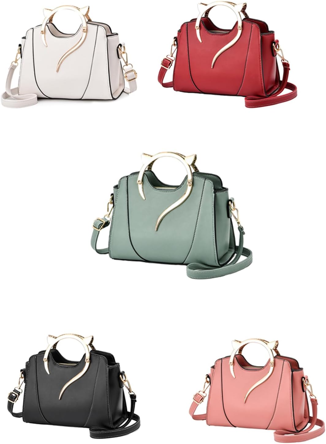 エレガントなカラーの Pu レザーショルダークロスボディバッグかわいい耳トップハンドルジッパーハンドバッグメッセンジャーバッグ財布女性のための