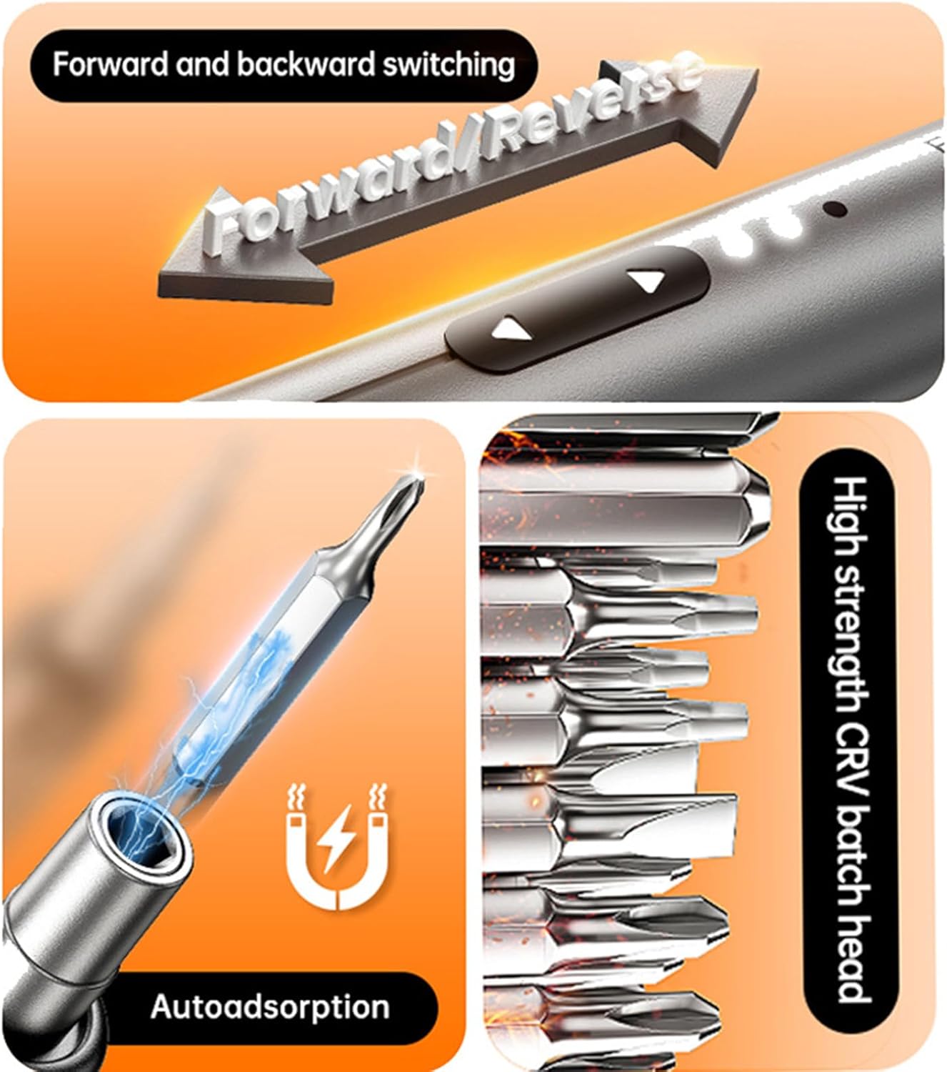 小型電動ドライバーセットは、日常使用における精密な作業に最適で、コードレスの利便性と携帯性を備えています。USB充電式バッテリーを採用しており、コードの煩わしさがなく、家庭やオフィス、RV、車両(自動車やトラックなど)での使用に便利です。コンパクトなデザインで、収納ケース付きにより、使用しない際もすべての部品が整理され保護されます。パソコン、スマホ、その他の小型デバイスの修理に必要な多機能性を提供します。効率的な電源管理とエルゴノミックなデザインにより、生産性を向上させる実用的なツールです。