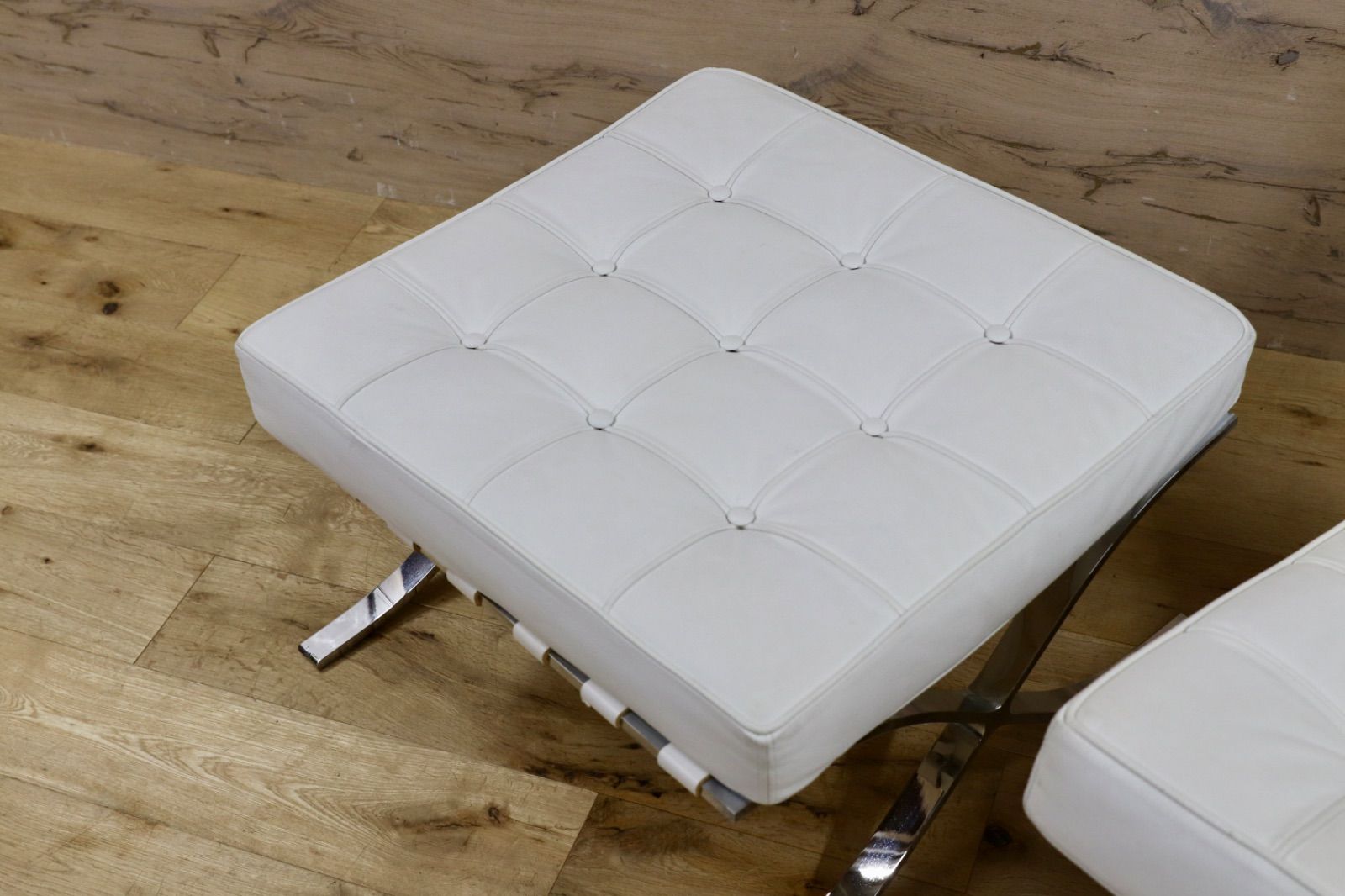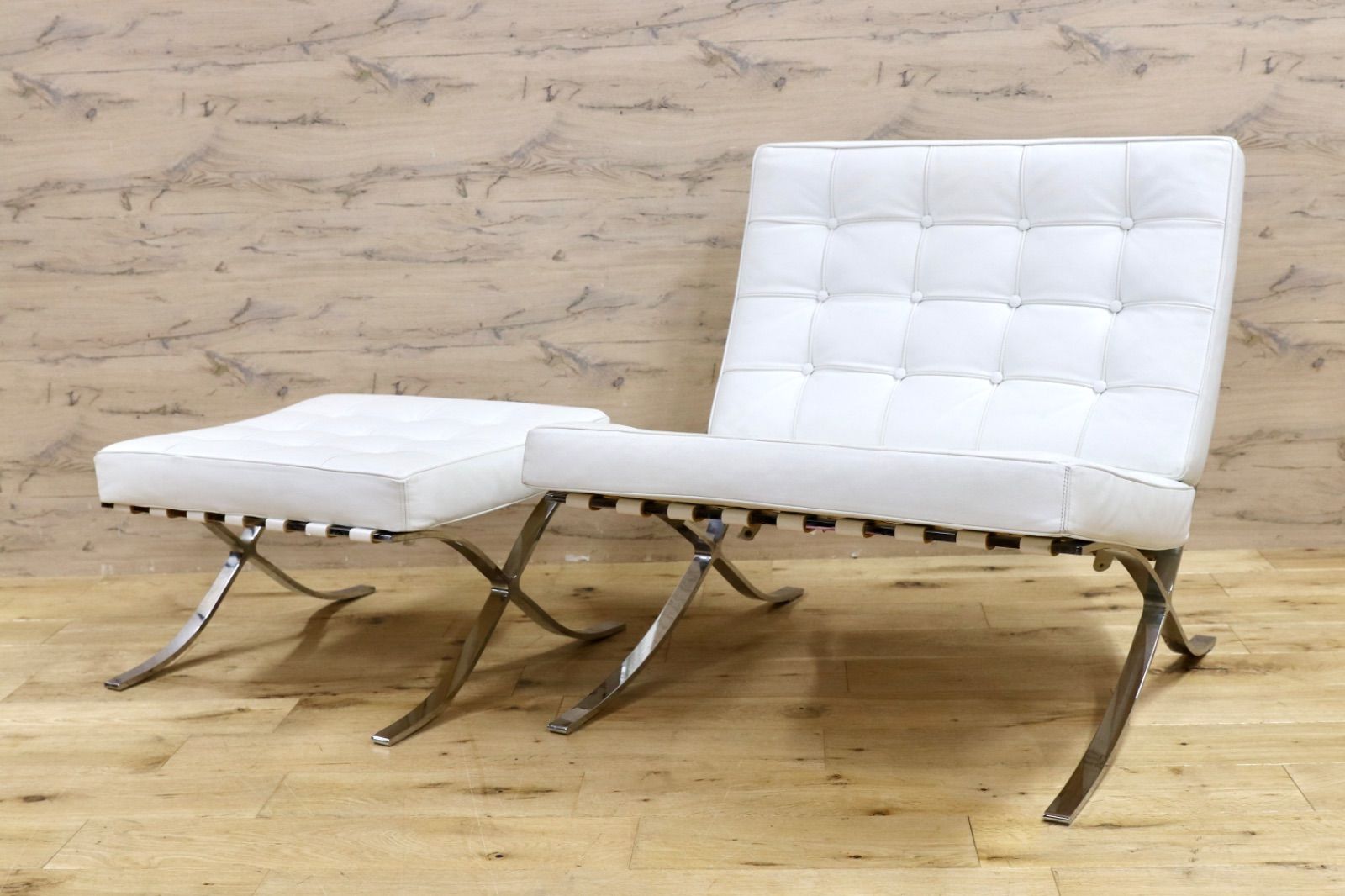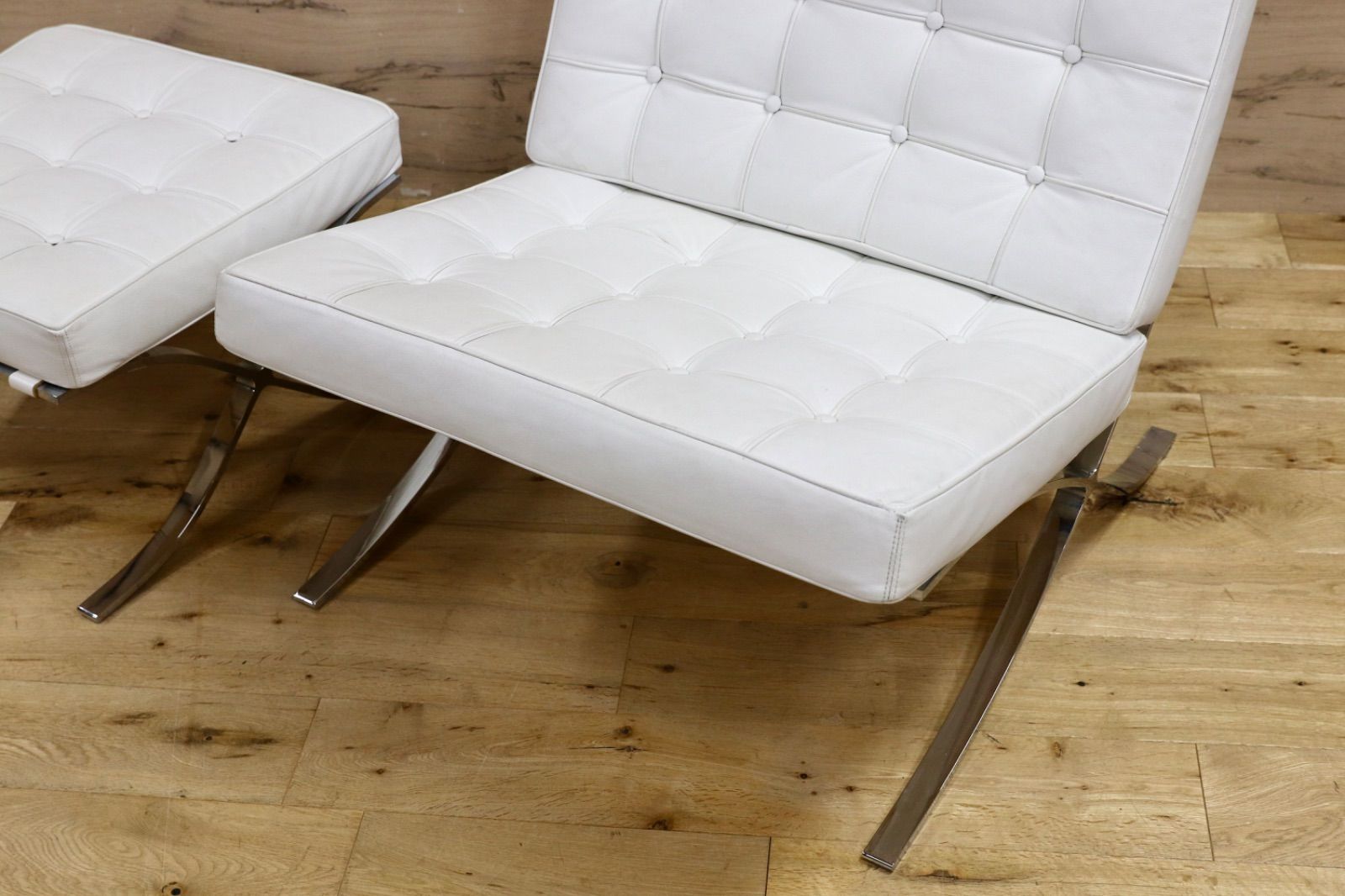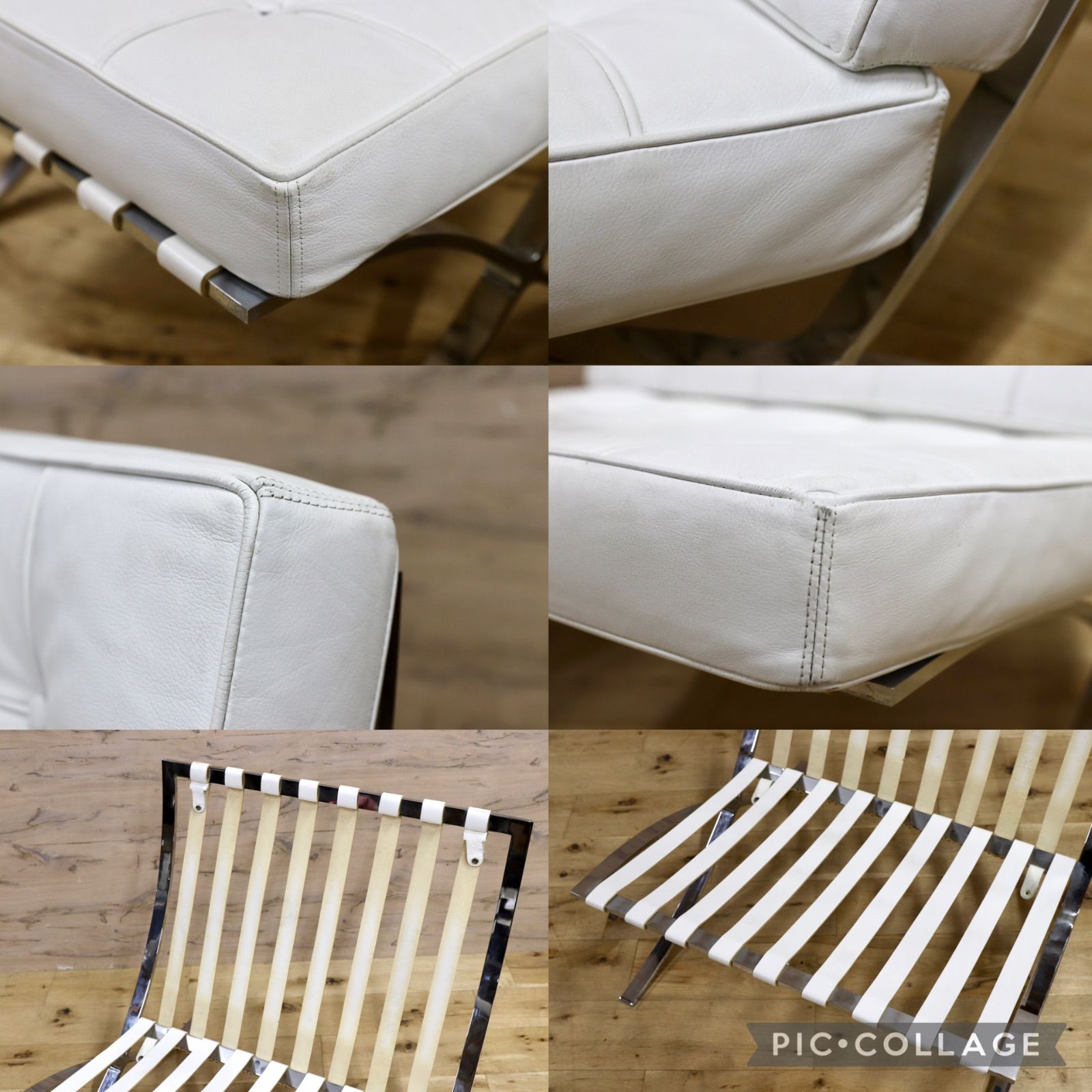 GMIS300○ミース・ファン・デル・ローエ バルセロナチェア 本革 ホワイト 名作 デザイナーズ リプロダクト オットマン ミッドセンチュリー