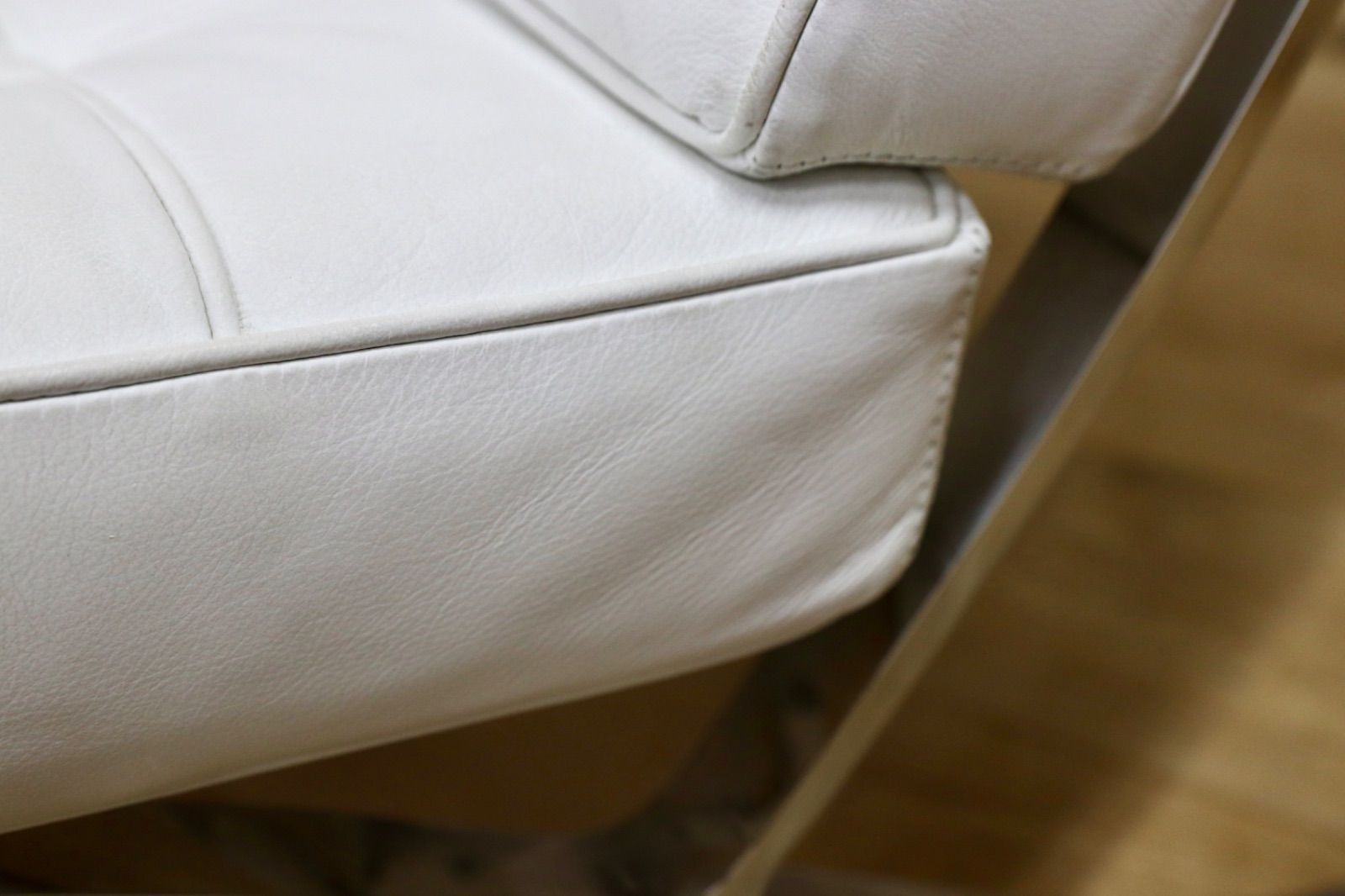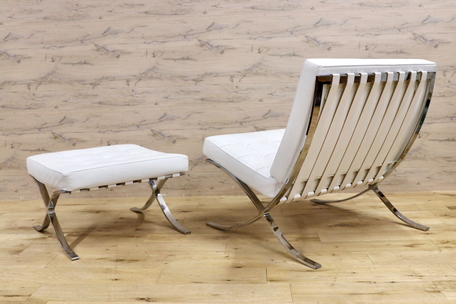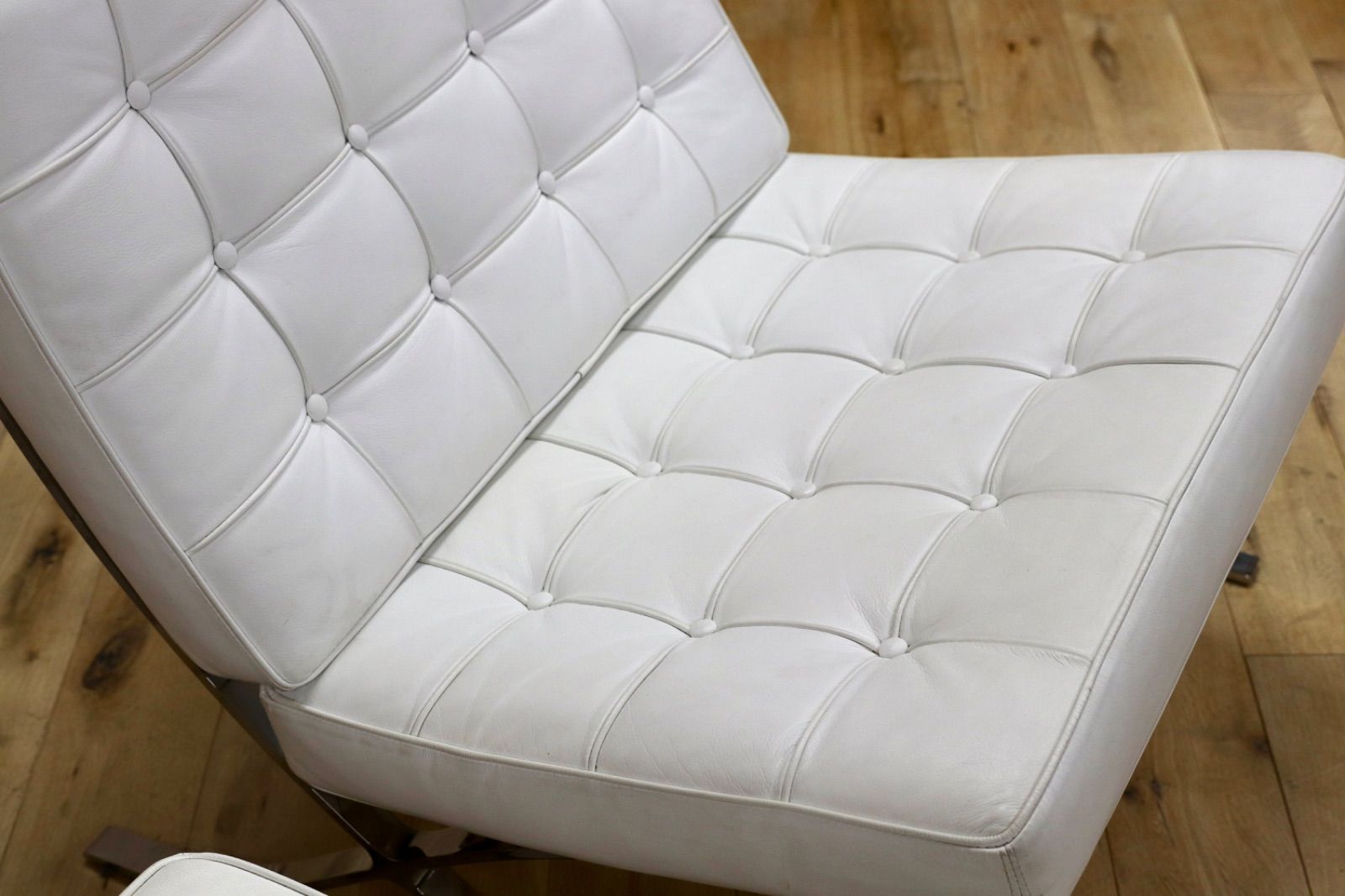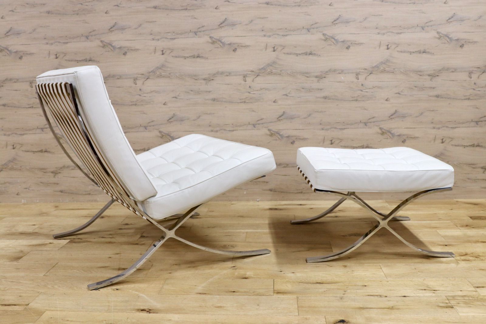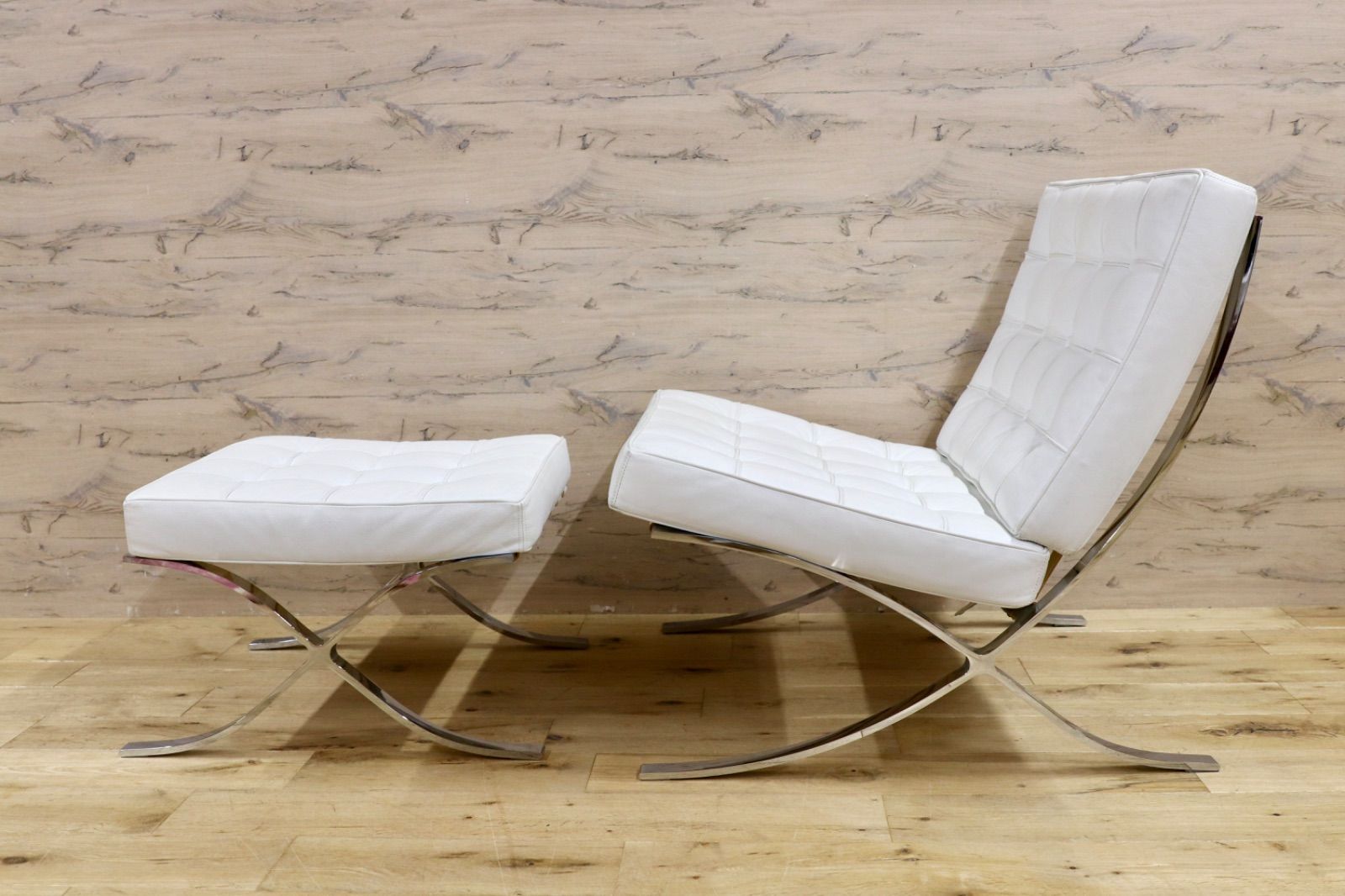 GMIS300○ミース・ファン・デル・ローエ バルセロナチェア 本革 ホワイト 名作 デザイナーズ リプロダクト オットマン ミッドセンチュリー