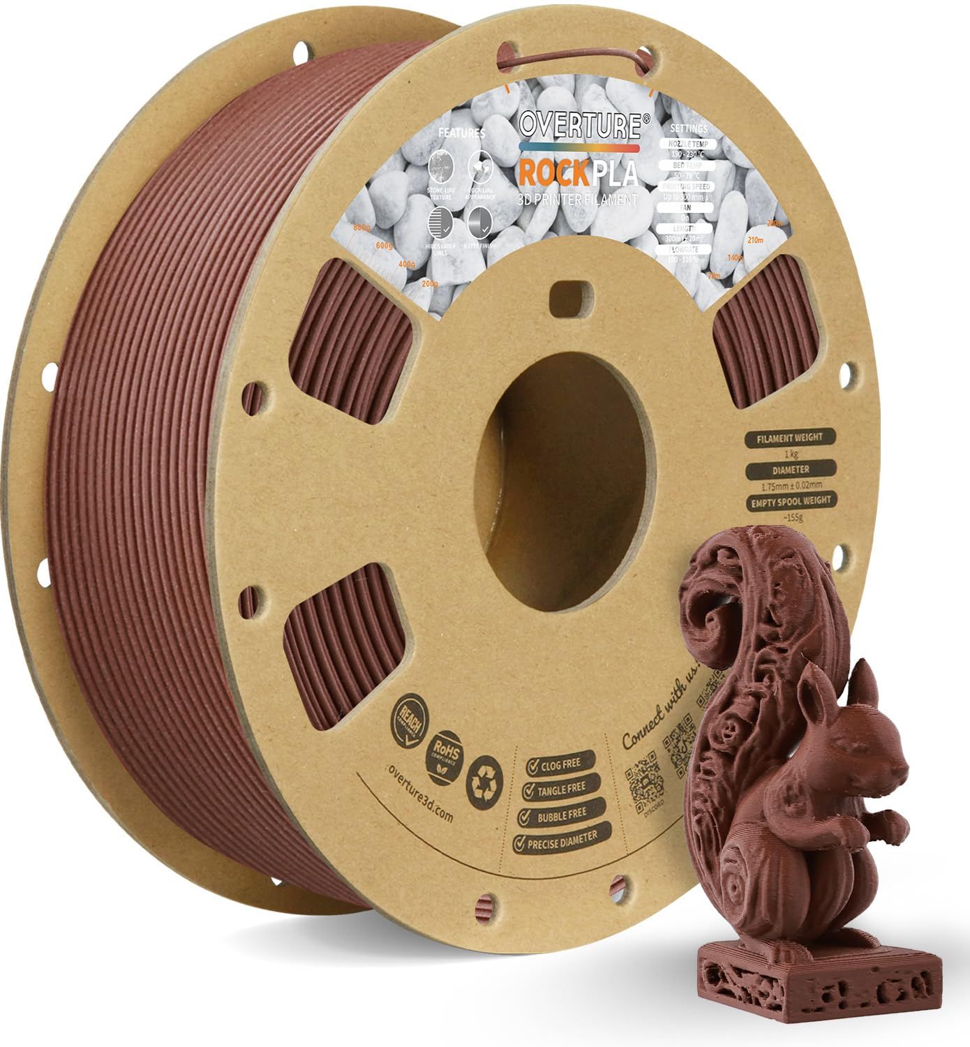 OVERTURE Rock PLA フィラメント 3Dプリンター用素材 3Dプリンター フィラメント 岩石 PLA 1.75mm 1kgスプール 高い寸法精度 高密度 ほとんどのFDMプリンターに適合 (Walnut Wood)
