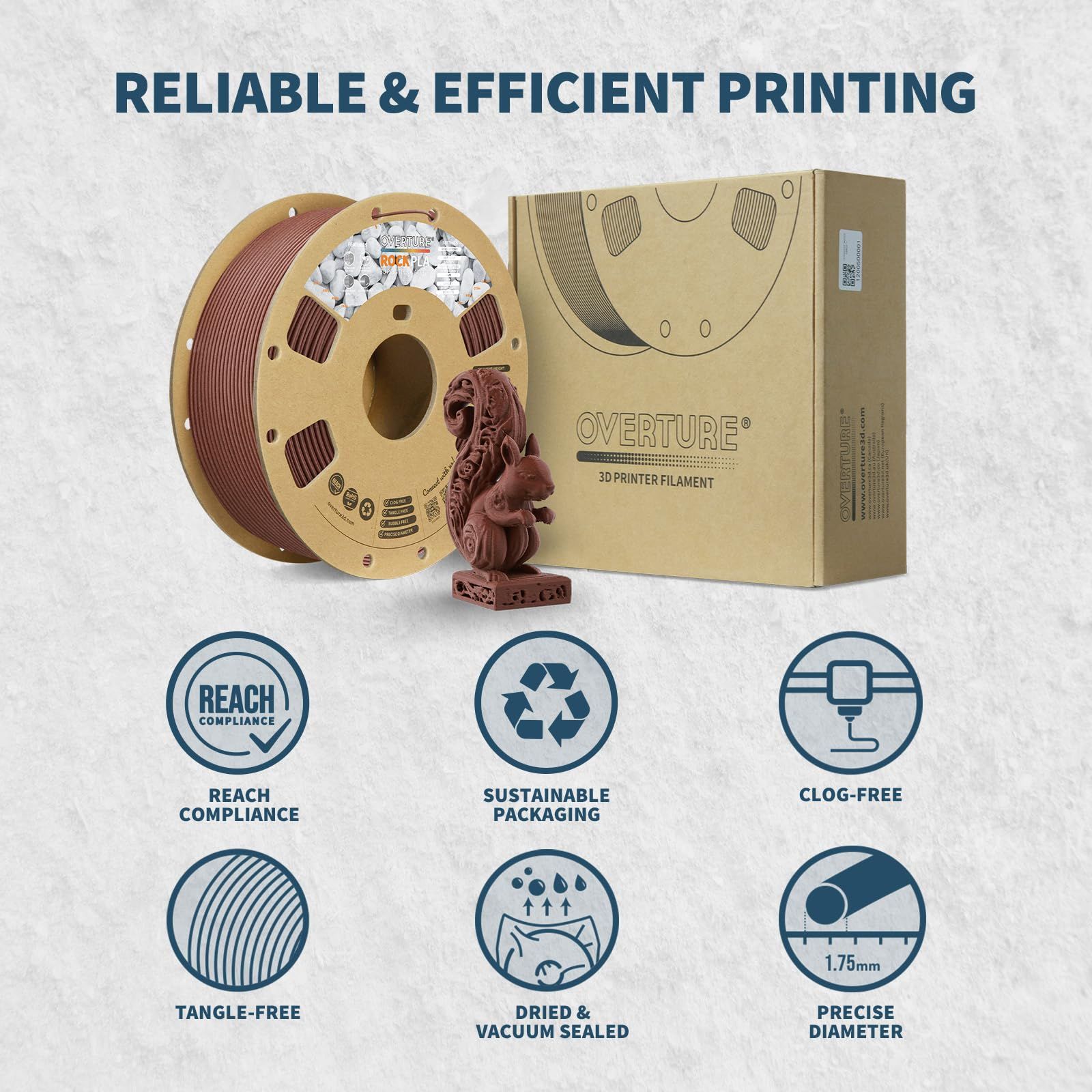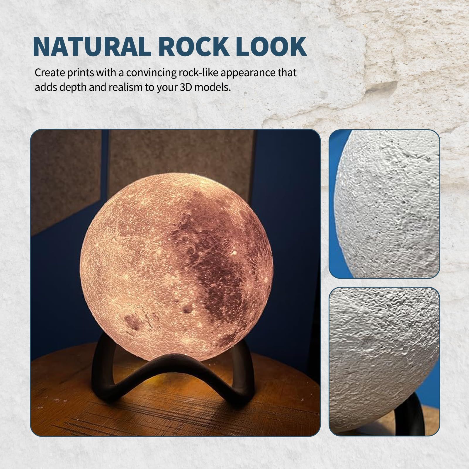 【リアルな岩の視覚化】Overture Rock PLAフィラメントで3Dプリントの世界に没頭してください。独特の大理石の質感と粗い表面が見事なビジュアル効果を生み出し、リアルな岩の特徴を持つプリントを生み出すことができます。
