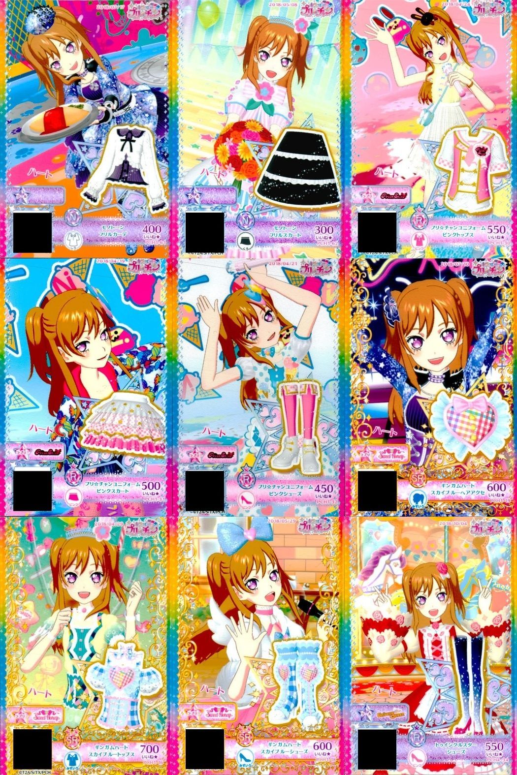 ux244 カード まとめ プリパラ プリチャン モンドージ フリルカーデ N スカート プリ☆チャン ピンクセット R ギンガムハート スカイブルー SR トップス シューズ トゥインクルスター