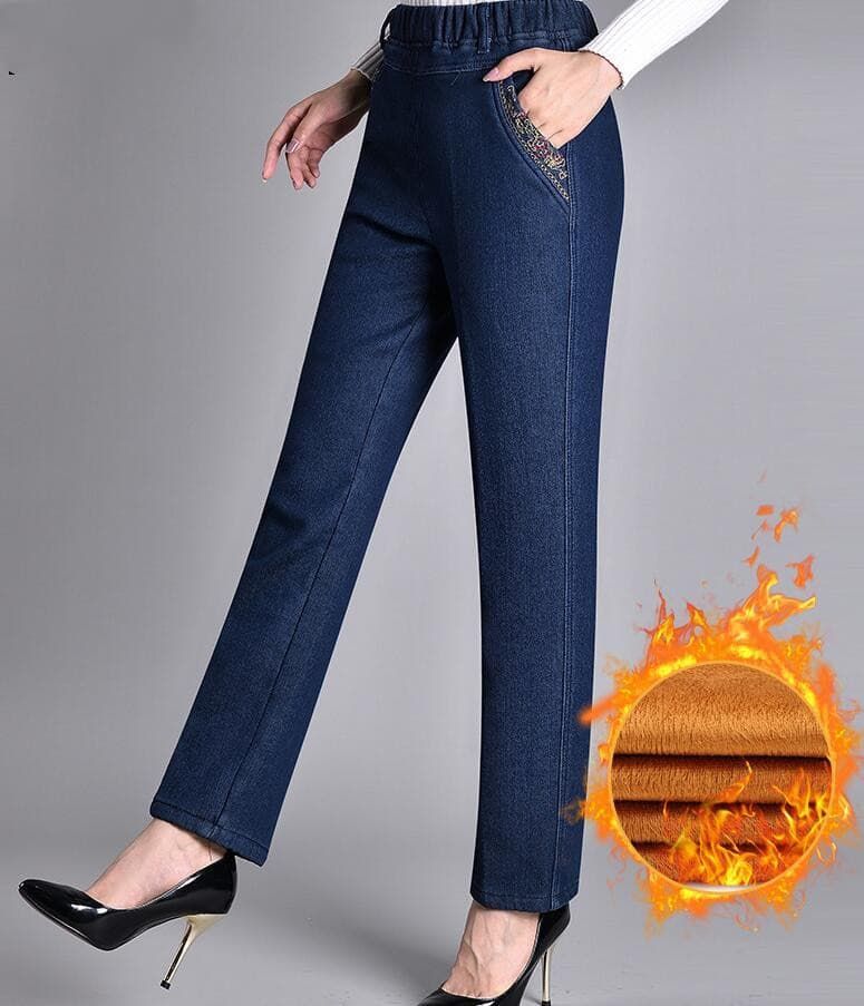 デニム パンツ 即購入OK レディース ボトムス 裏起毛 防寒ズボン 暖かい 大きいサイズ 刺繍ポケット ウエストゴム 裏起毛デニムパンツ レディース 秋冬 ママ 40代 50代 テーパードパンツ 秋冬 ふわふわ もこaimeiyi20