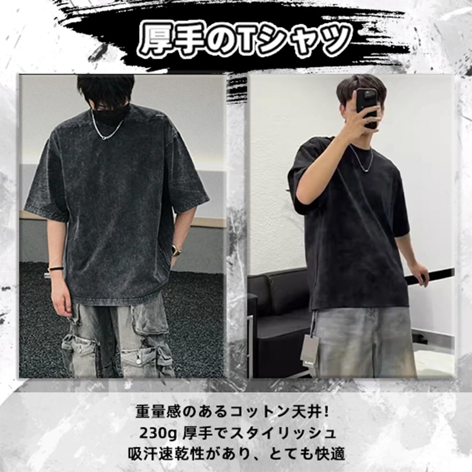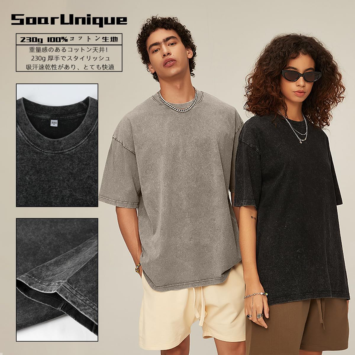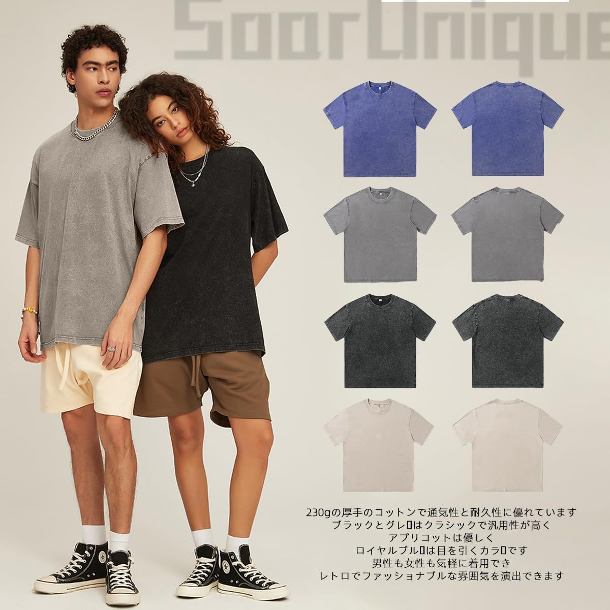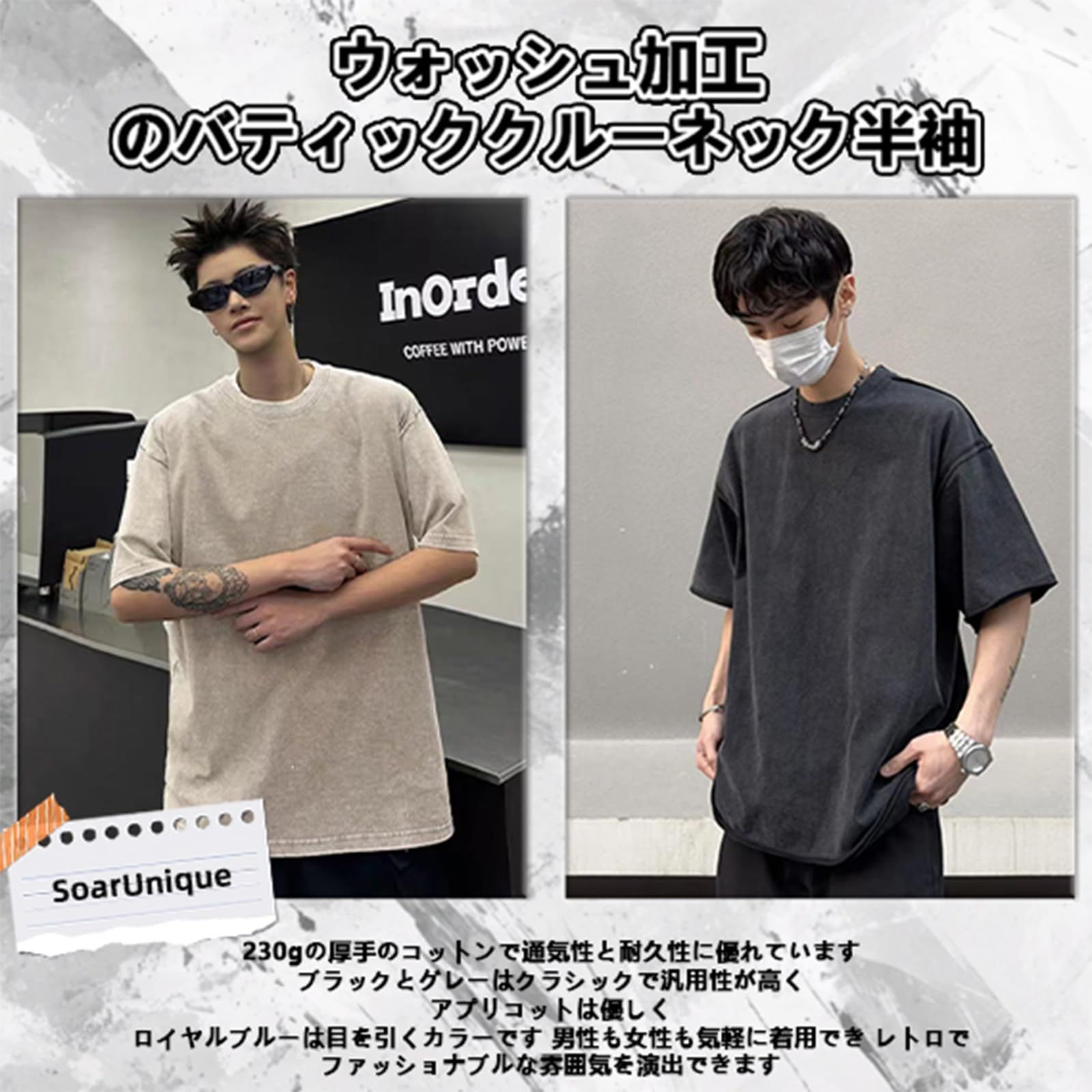 【数量限定】ヴィンテージ風|アメカジ系 ビッグシルエット 半袖|7オンス 無地Tee|ゆったり メンズ オーバーサイズ 厚手Tシャツ カジュアルティーシャツ|重ね着風スタイル対応|春夏向け [SoarUnique]
