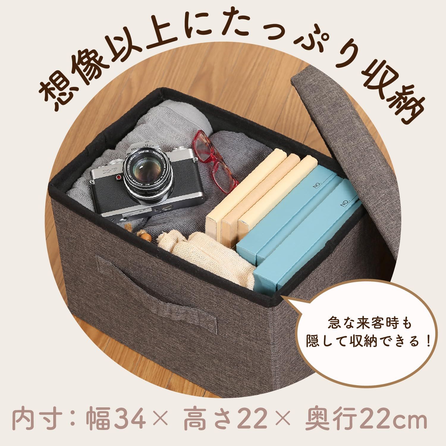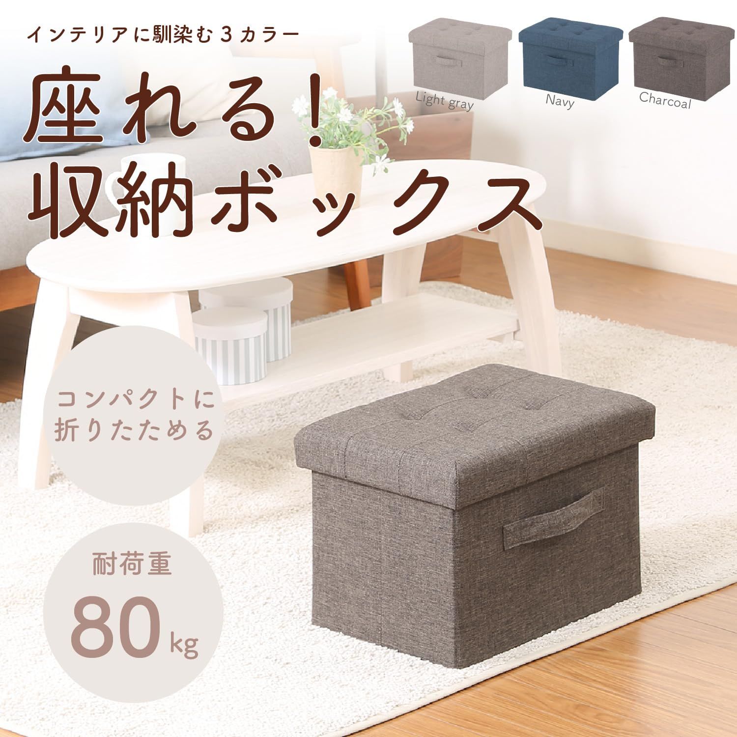 チャコール オットマン 幅38×奥行25×高さ25cm インナーボックス 折りたたみ 耐荷重80kg 収納スツール ハント 不二貿易 86143