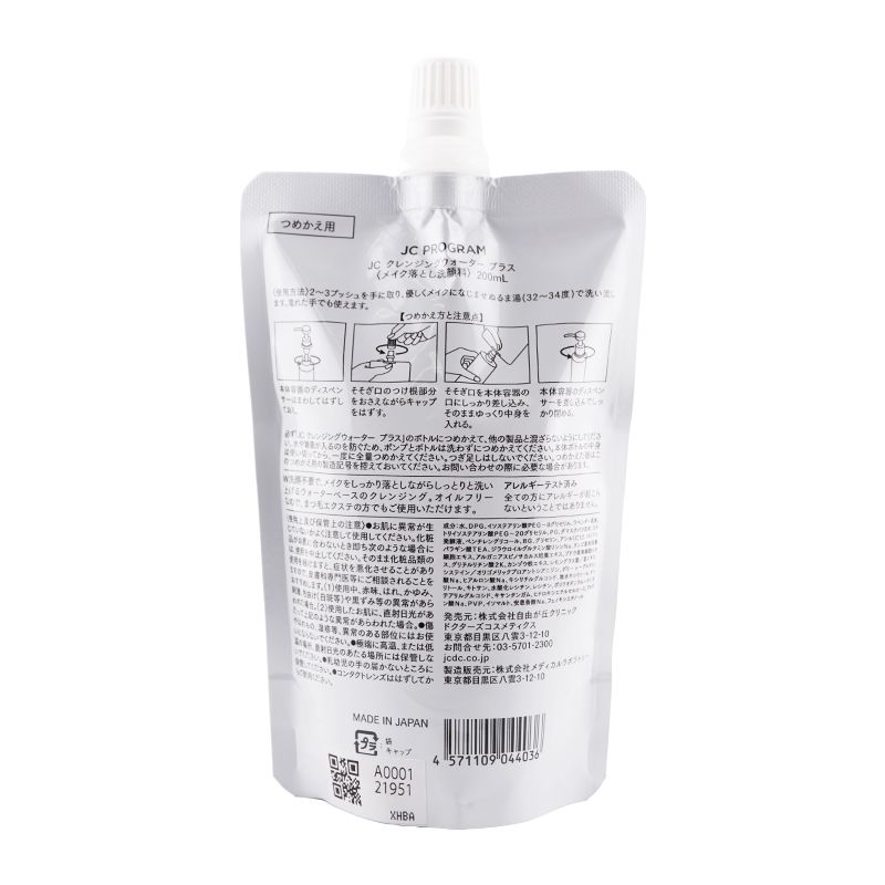 JC PROGRAM クレンジングウォーター プラス 200mL メイク落とし洗顔料 つめかえ用 洗顔不要 マツエクOK レフィル[ネコポス]