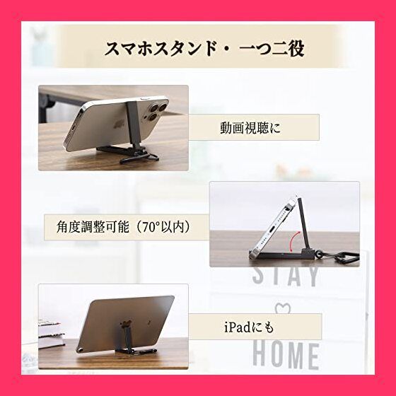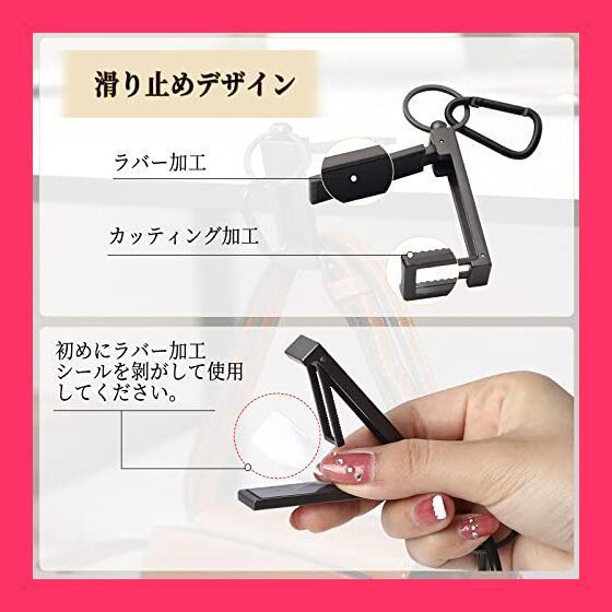 *【2WAY・スマフックスplus】スマホスタンド機能付き、動画視聴、読書など楽々に楽しめます。70*以内調節可能。【パッケージ内容】フック*1、カラビナ*1。クリスマスプレゼントおすすめ
