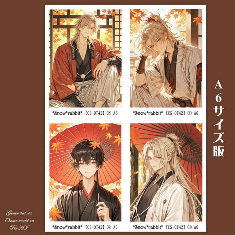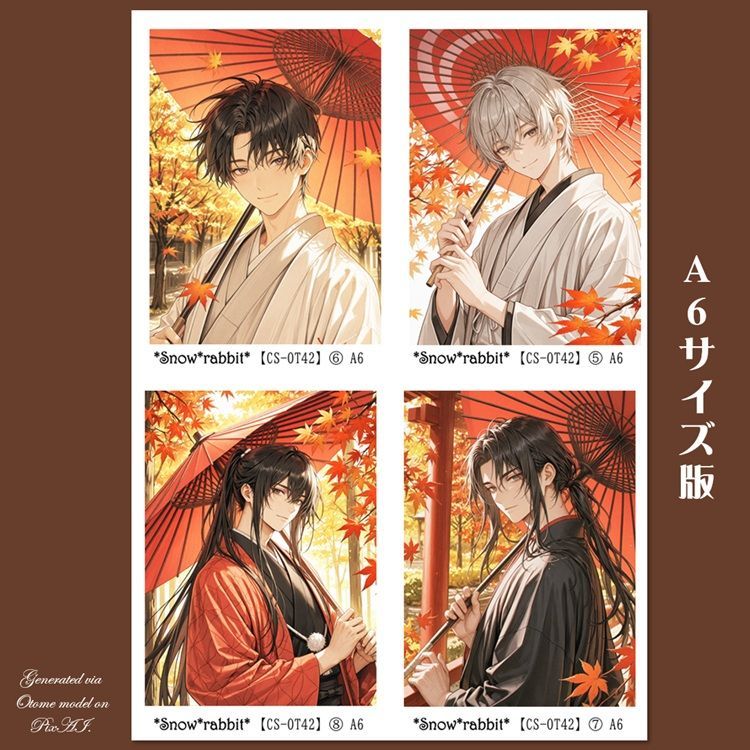 - A6サイズ(①~⑧柄を1枚ずつ)