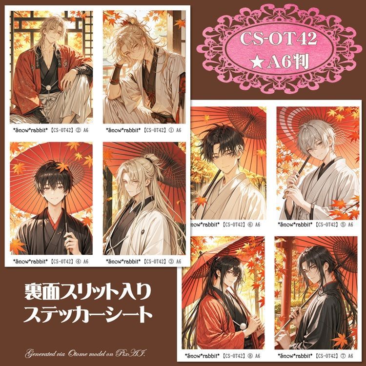 【CS-OT42】和服 男の子 人物ステッカー 紙モノ コラージュ素材 交換便 手帳デコ おすそ分けファイル ステッカーシート 和装男子
