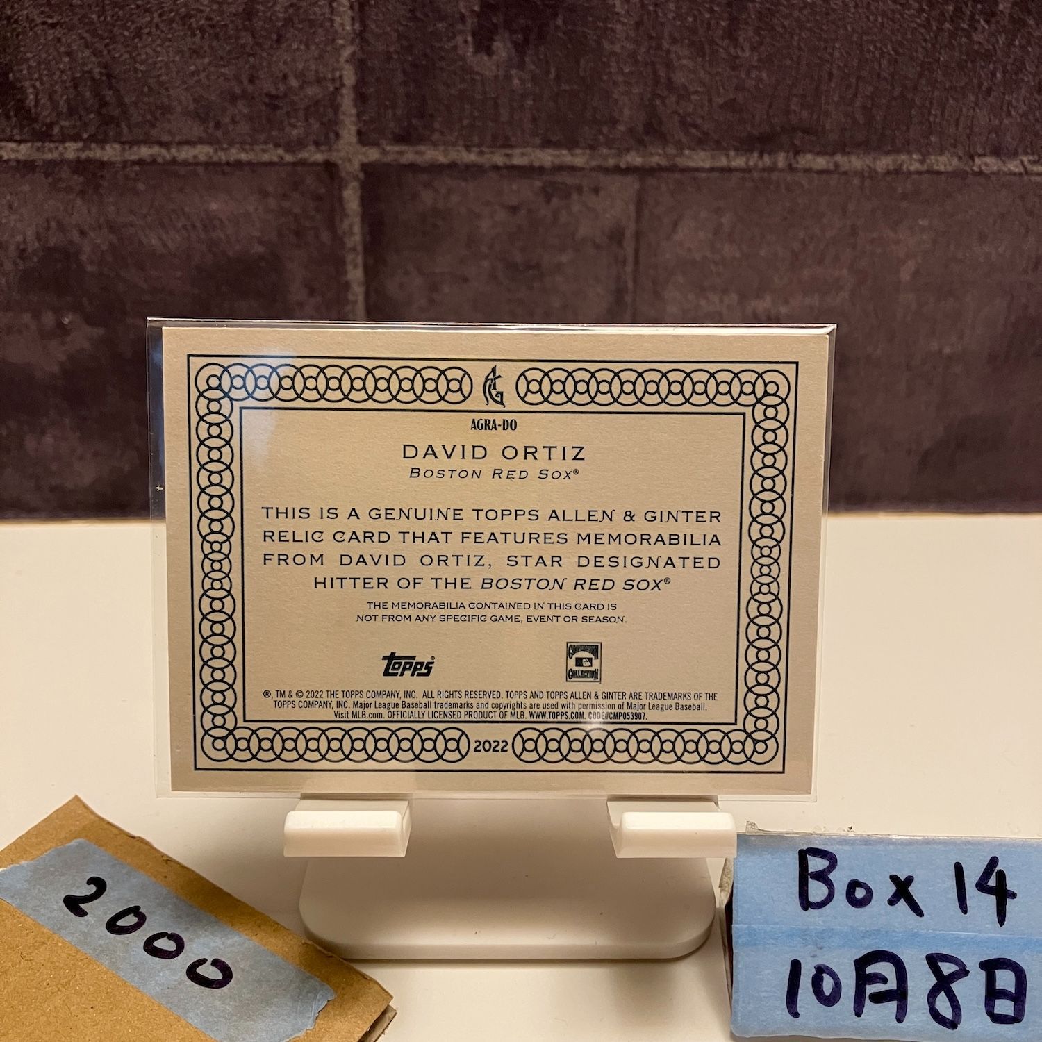 2022 Topps David Ortiz Boston Red Sox Game-Used ジャージ Memorabilia Allen & Ginter Relic カード