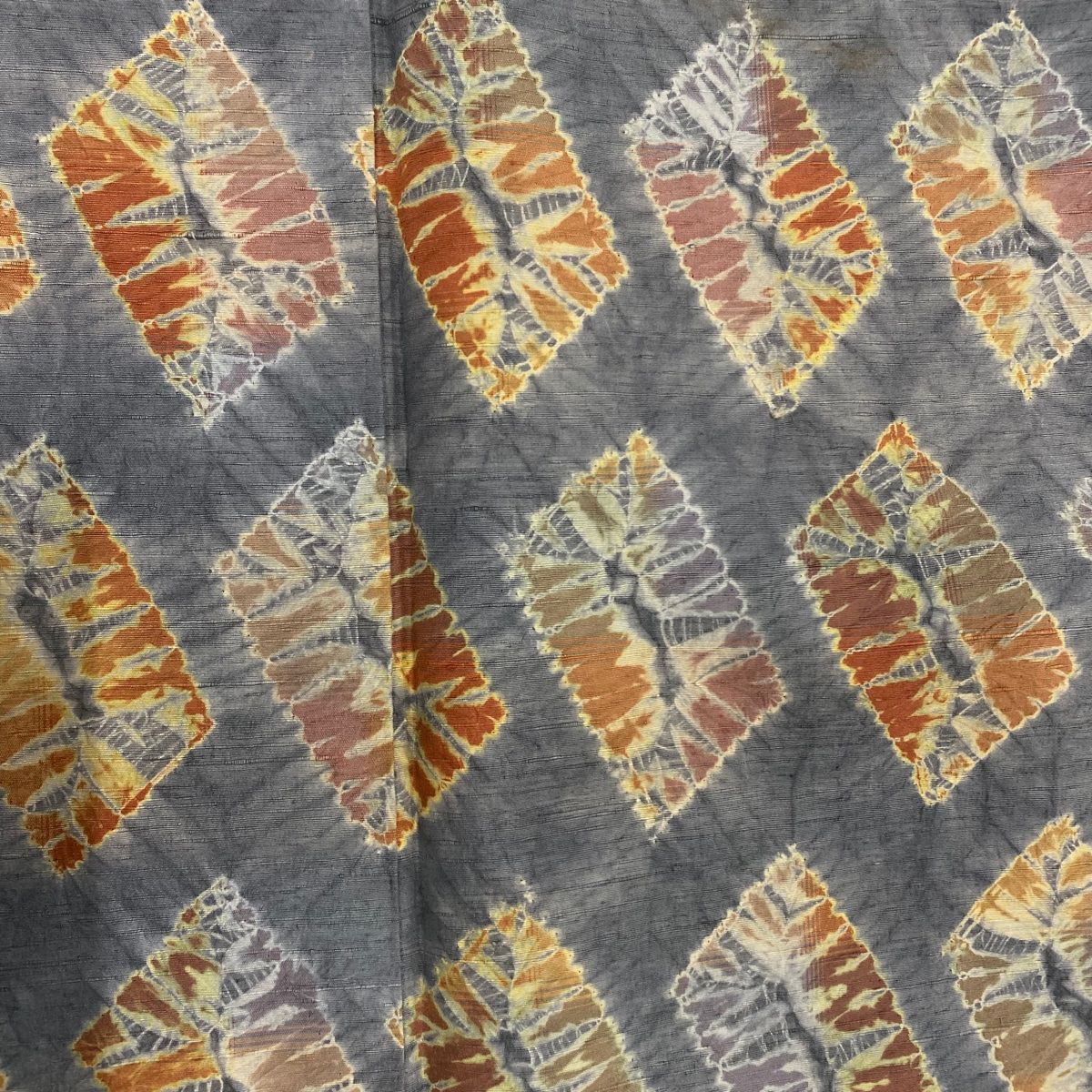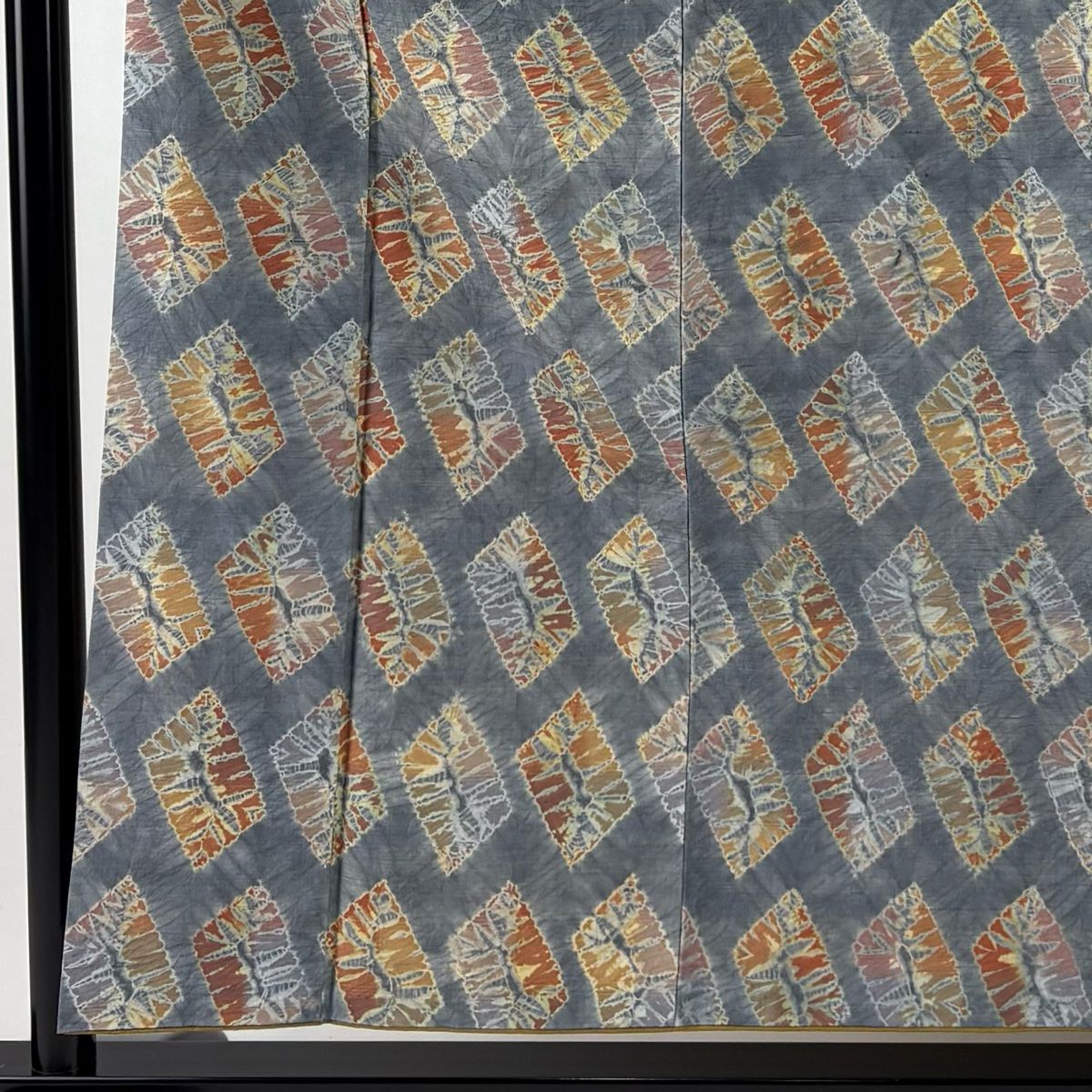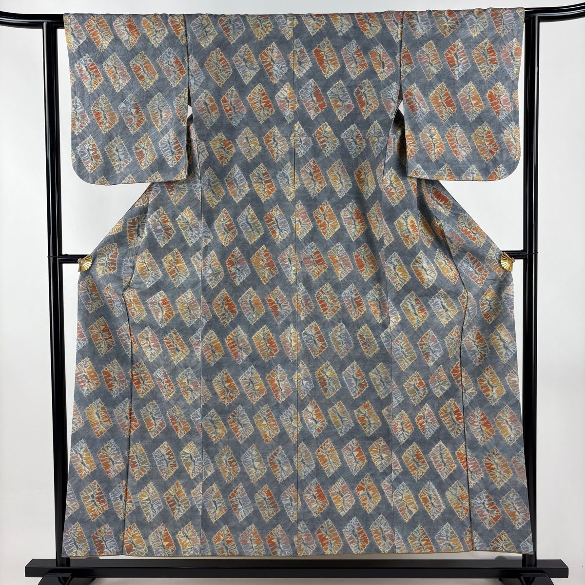 小紋 身丈155cm 裄丈62cm S 袷 紬地 幾何学模様 絞り 灰色 正絹 秀品 【中古】