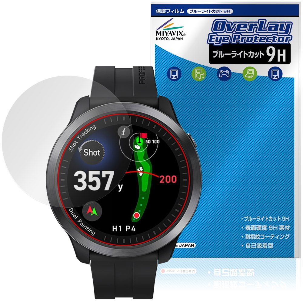 ボイスキャディ「Voice Caddie T12PRO」に対応した目にやさしい液晶保護シート! ブルーライトカットタイプの OverLay Eye Protector(オーバーレイ アイ プロテクター)! 液晶画面から放出されるブルーライトを約29%カットする保護シートです。 液晶画面の汚れやキズ付き、ホコリからしっかり保護します。 表面硬度9H素材を採用しフィルムにキズがつきにくくなっています。  ★指紋が目立たない! 「OverLay Eye Protector(オーバーレイ アイ プロテクター)」は目の疲労、頭痛、不眠などの原因といわれるブルーライトをカットする保護シートです。 また、指紋が目立たない特殊な素材を使用しています。そのため、指紋汚れを気にすることなくタッチパネルを楽しむことができます。ついた指紋を拭き取りやすい耐指紋コーティングも採用してます。 ★目にやさしいブルーライトカットタイプ! 液晶画面から放出されるブルーライトの中でも特に刺激が強いとされているのが450nmの光線。「OverLay Eye Protector(オーバーレイ アイ プロテクター)」はその450nmの光線を約29%します。対応機種本体の液晶画面を保護するだけでなく、目にもやさしい保護シートです。 ★表面硬度9H素材を使用! 表面硬度9H素材を採用しフィルムにキズがつきにくくなっています。 もちろん安心の日本製素材を採用。加工からパッケージングまで、すべて日本国内で行っております。 ★自己吸着型保護シート! 自己吸着タイプなので貼り付けに両面テープや接着剤は必要なく、簡単に貼り付けることができます。液晶画面に合わせてジャストサイズにカットされた少し硬めのシートなので、隅々までしっかりとキズや汚れから守ってくれます。シート表面のキズや質感の劣化が目立つようになったら、お取換えください。 ■対応機種 ボイスキャディ ゴルフウォッチ Tシリーズ Voice Caddie T12PRO ※保護する範囲は画像の赤枠または緑枠内の範囲となります。 ■内容 液晶保護シート 1枚 ■メーカー ミヤビックス ■JANコード / 商品型番 JANコード 4573604234608 商品型番 O9HEVCT12PR/12 ※この商品は初期不良のみの保証になります。 ※写真の色調はご使用のモニターの機種や設定により実際の商品と異なる場合があります。 ※製品の仕様は予告無しに変更となる場合があります。予めご了承ください。 ※このページに記載されている会社名や製品名、対応機種名などは各社の商標、または登録商標です。