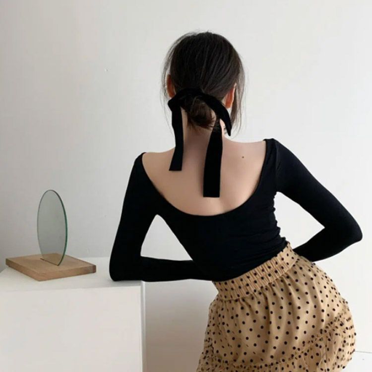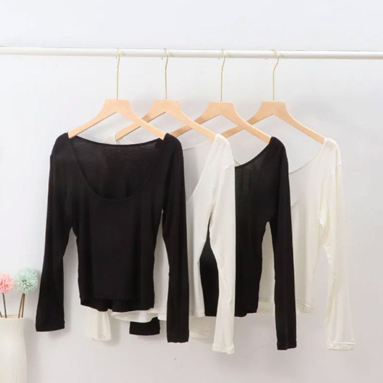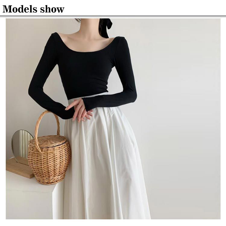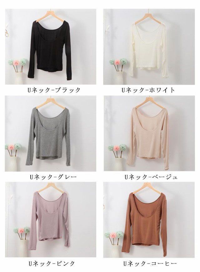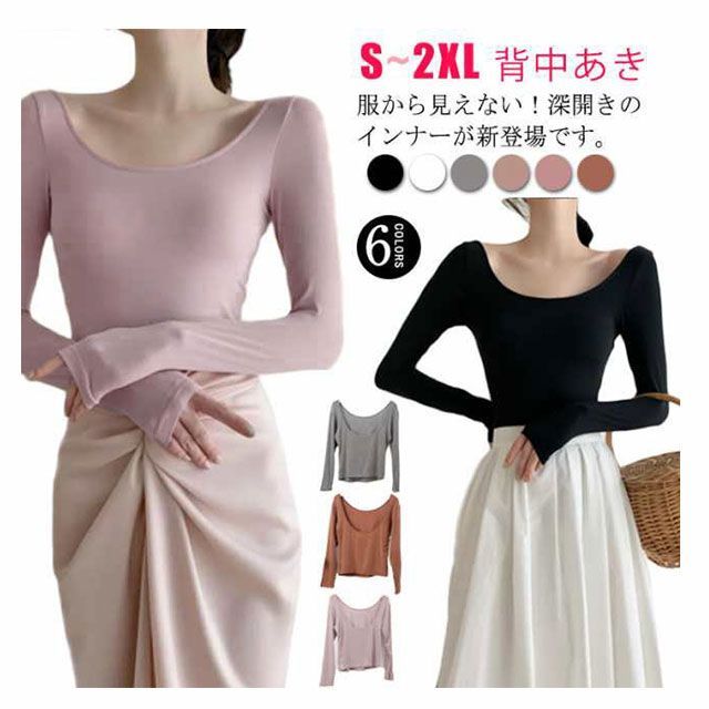 インナー 深開き あったか バレエネック バックオープン 肩開き 背中あき 襟ぐり広め 服から見えない 無地 シンプル 薄手 肌着 長袖 防寒 トップス チラ見え防止 お洒落 送料無料#swx1818