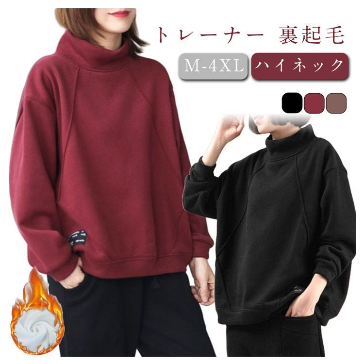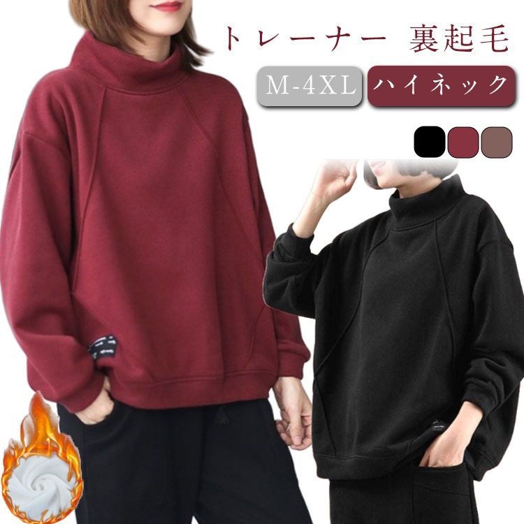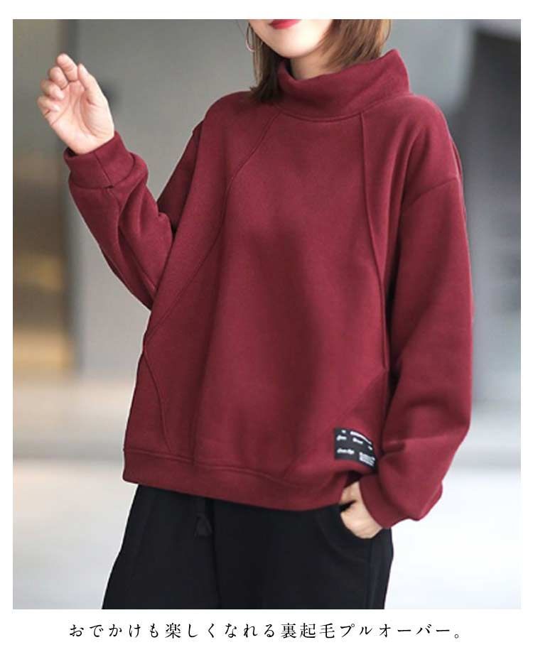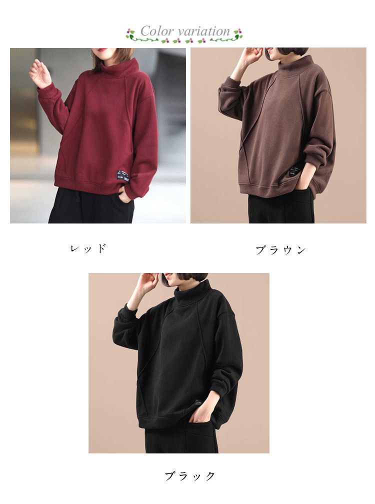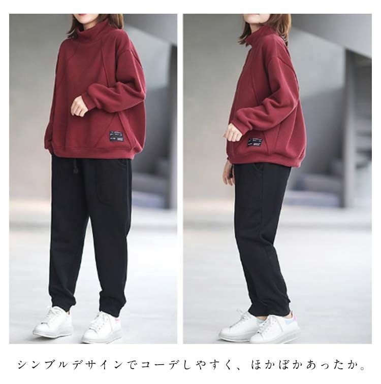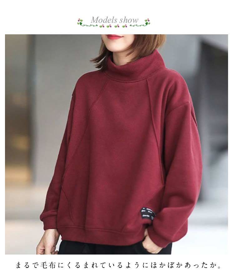 トレーナー 裏起毛 レディース プルオーバー スウェット 長袖 無地 ロング パーカー 秋冬 ハイネック あったか ゆったり ップス 楽ちん カジュアル オーバーサイズ#jyonn3871