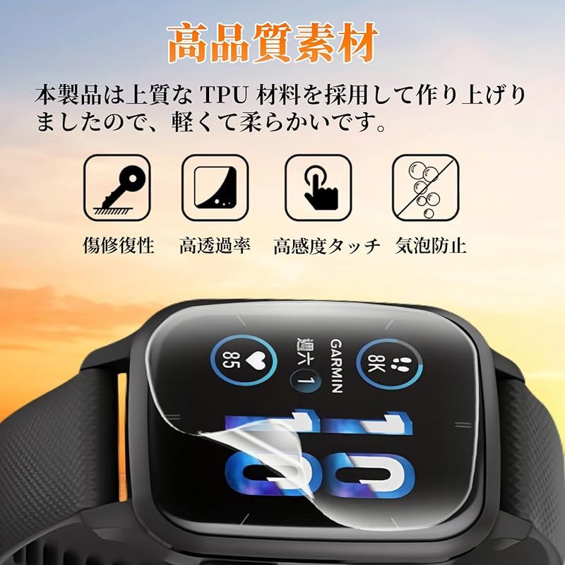 【2 枚入り & アンチグレア】JACRON 対応 GARMIN Forerunner 265S Music 用 フィルム TPU 素材 対応 Forerunner 265S 保護フィルム サラサラ タッチ感 手触り良い 超薄 耐衝撃 反射防止 露出防止 対応