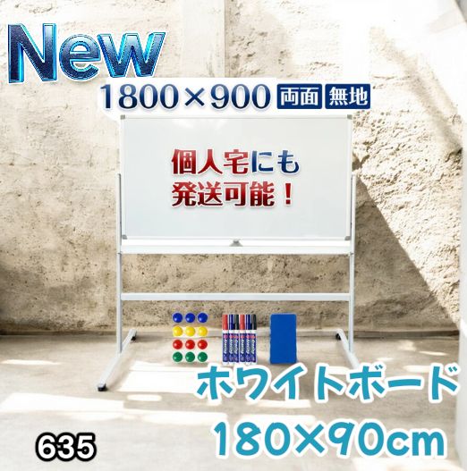 #635 ホワイトボード 1800×900 脚付き 両面 回転式 スチール キャスター付き 事務所 会社 会議 オフィス ※北海道、沖縄本島、沖縄の離島、その他離島へは別途配送料有り