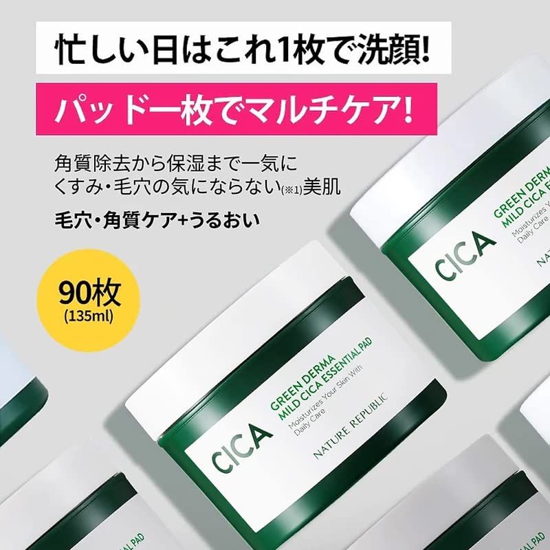 【送料込】【NATURE REPUBLIC OFFICIAL】ネイチャーリパブリック グリーンダーマCICA エッセンシャルパッド 90枚(135mL)×1