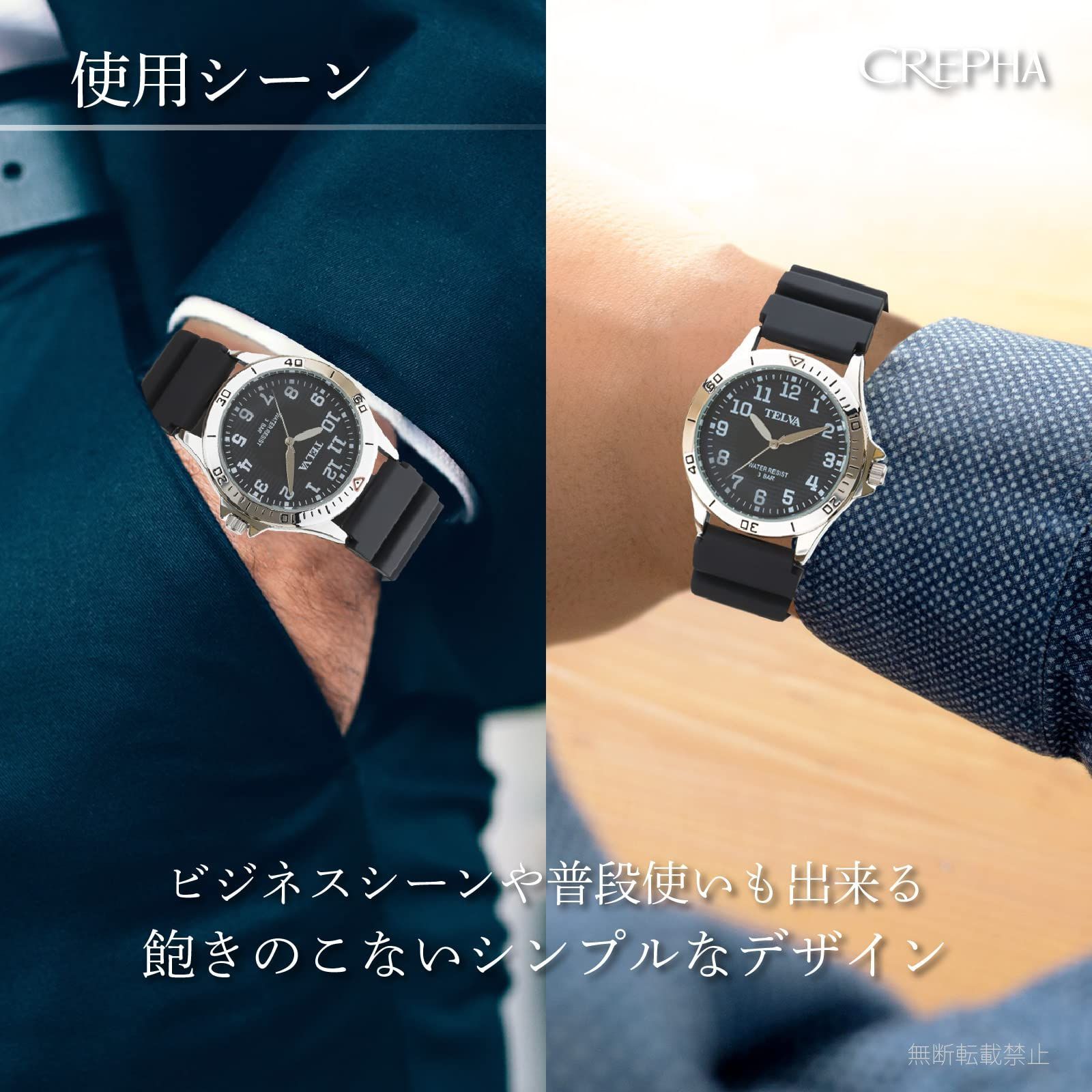 【新着商品】ブラック ウレタンベルト ラバーベルト 防水 メンズ TE-AM152-BKS アナログ 腕時計 CREPHA(クレファー)