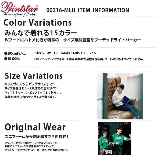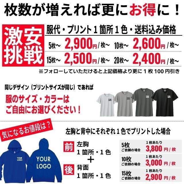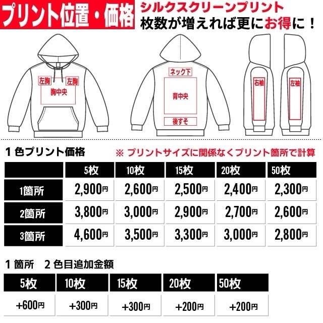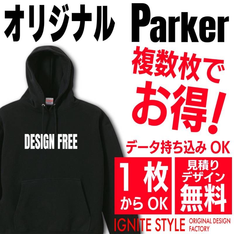 オリジナルパーカーの作成はIGNITE-STYLEにお任せください。 カフェ、居酒屋、スタッフT、ユニフォームなど幅広くご利用いただいております。 オリジナルパーカーをスタッフ、チーム、クラブ、クラスT、ユニフォームなどで揃えてみませんか? ■プリント方法 シルクスクリーン印刷、フルカラープリント、ラバー転写プリント、昇華転写プリントよりお客様のご要望に合わせてご提案させていただいております。 アパレルブランドで使用されるプリント方法で作成いたしますのでご安心ください。 ■お見積もり、デザイン確認は無料 ご納得いただいてからご購入頂きますのでまずはお気軽にお問合せください! ■フォロー特典・・・1枚あたり100円お値引きさせていただきます! ? __________________ ■ご注文方法■ ①下記3点を教えてください  □ご依頼枚数・サイズ・カラー  □印刷箇所  □デザイン内容(画像がある場合は専用で出品をお願いします) ②イメージサンプル作成 ③ご購入後作成→発送 ※ 追加プリントは画像参照願います。 ※ パーカーカラー、サイズはバラバラでもOKです。 ※表示価格1500円は20枚以上無地でのご注文の場合の価格となります。 ??????????????????? ■納期  ご購入後、土日祝日を除く7?14日以内に発送いたします。  ※混み具合によっては前後致します。 ■注意事項  ご購入後のサイズ変更、カラー変更、デザイン変更はできませんので最終確認は必ずお願い致します。  ご購入後のキャンセルはできませんのでご了承願います。 ■取り扱い商品 Tシャツ、ドライTシャツ、ロングTシャツ、パーカー、スウェット、ブルゾン、キャップ、トートバッグ ステッカー、ミニノボリ、キーホルダー、ハンカチ