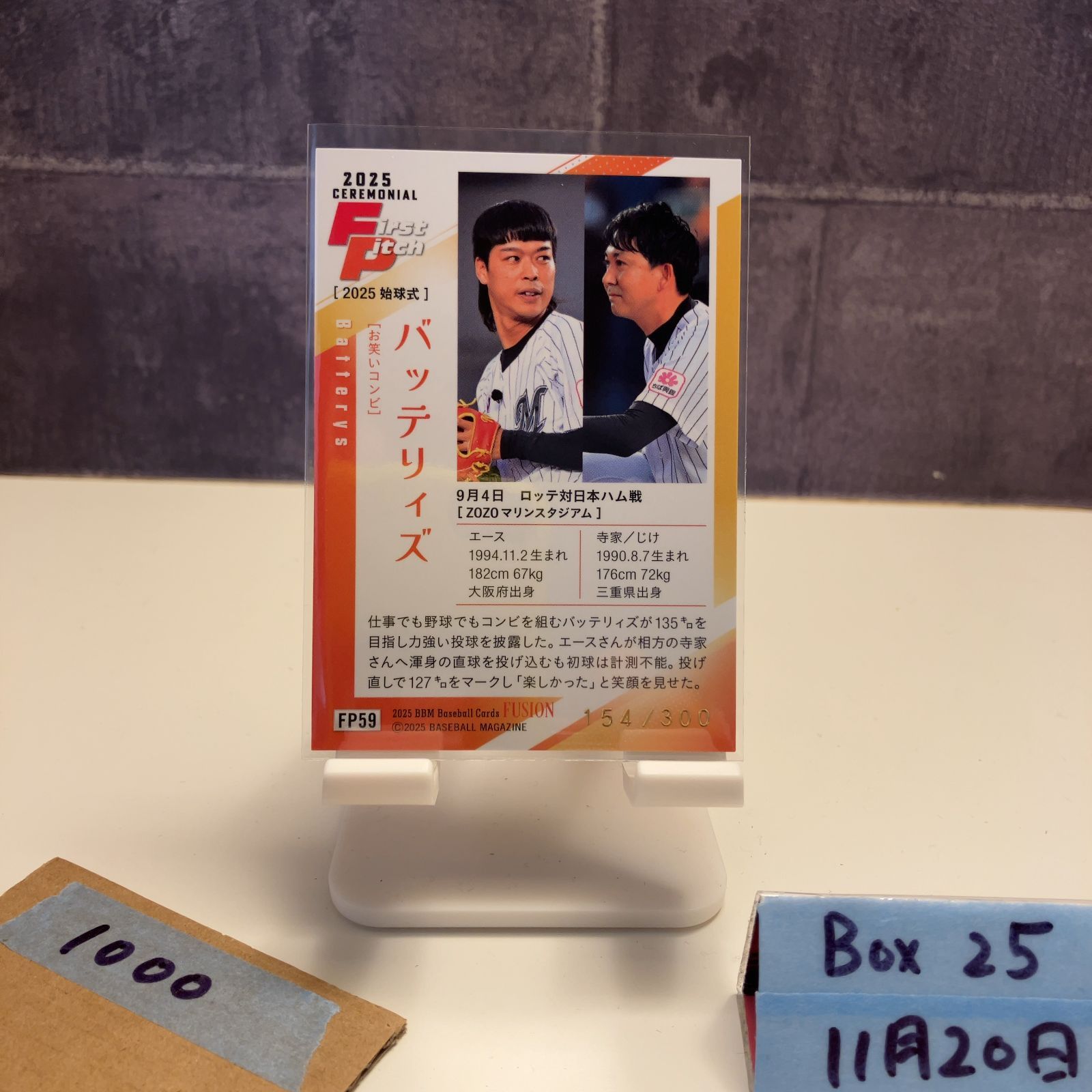 2025 BBM Fusion バッテリィズ 154/300 千葉ロッテマリーンズ 始球式 First Pitch ハートパラレル カード