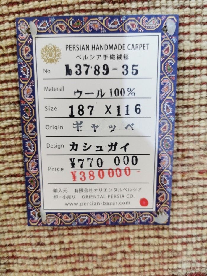 ギャッベ 手織りウールラグ 187×116cm カシュガイ