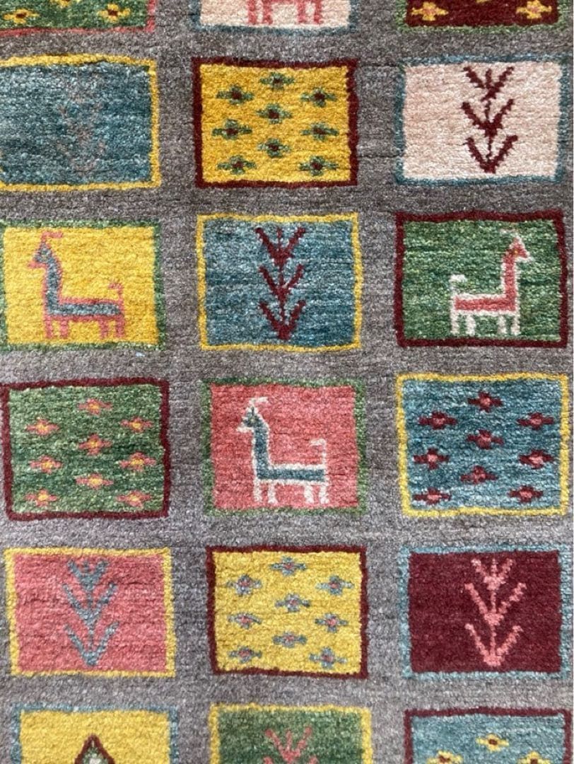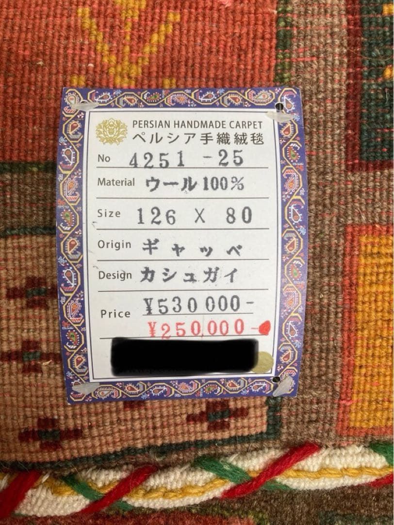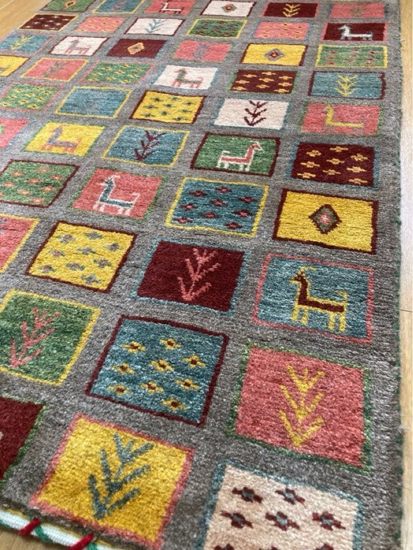 ギャッベ 手織りウールラグ 126×80cm カシュガイ