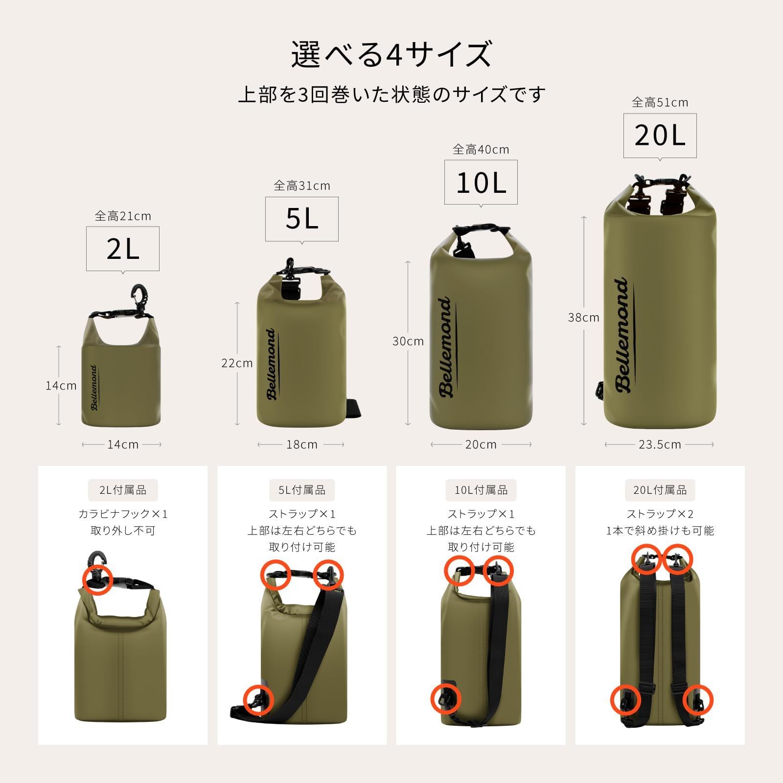 ベルモンド 防水バッグ ドライバッグ ウォッシュバッグ バイク 防水バック ドライバック メッセンジャーバッグ IPX6 防水袋 | 6色 2L | 小さめ ポーチ | B1561#3 アーミーグリーン