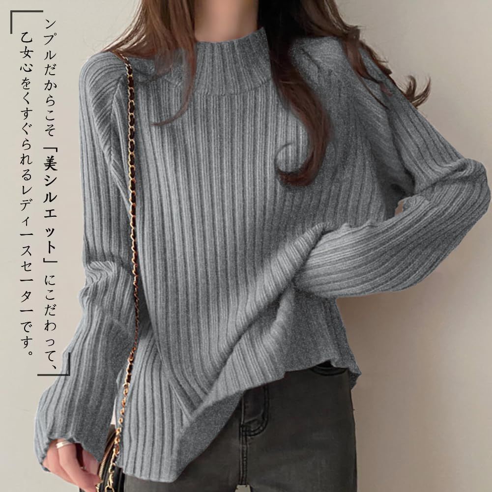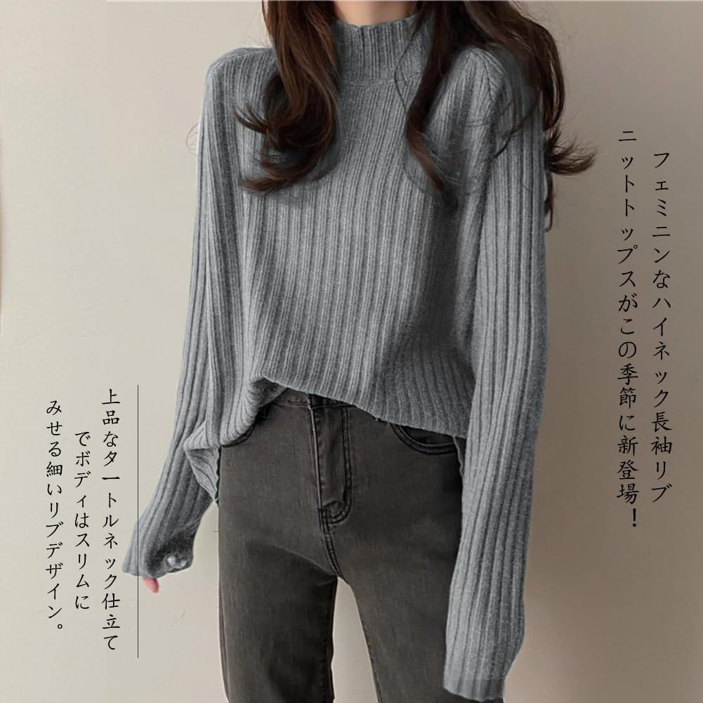 通勤 暖かい お出掛け カジュアル 可愛い おしゃれ トップス ゆったり 秋 柔らかい 着痩せ 長袖 シンプル タートルネック リブ 冬 ハイネック ニット レディース セーター [Yino]