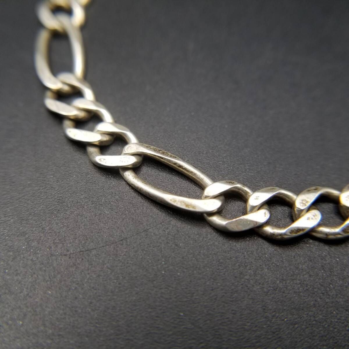 イタリア製 シンプル フィガロチェーン 925 シルバー ヴィンテージ ブレスレット 英国 Sheffield Convention マーク ユニセックス Y23-D