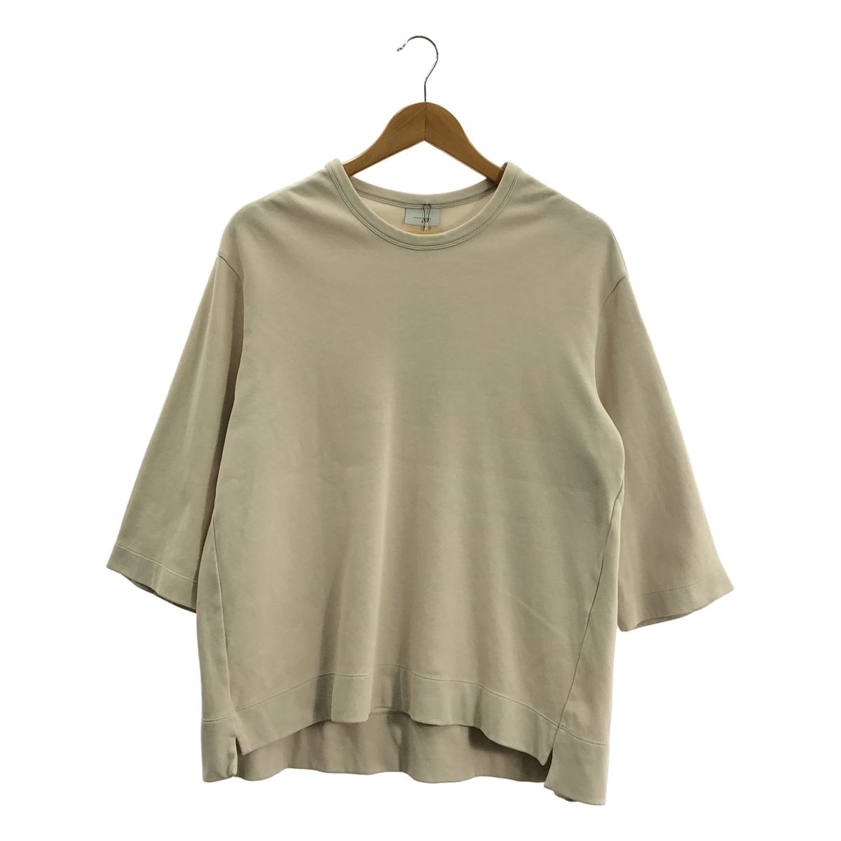 強撚コットン 接結リバーニット 5分袖 クルーネックプルオーバー