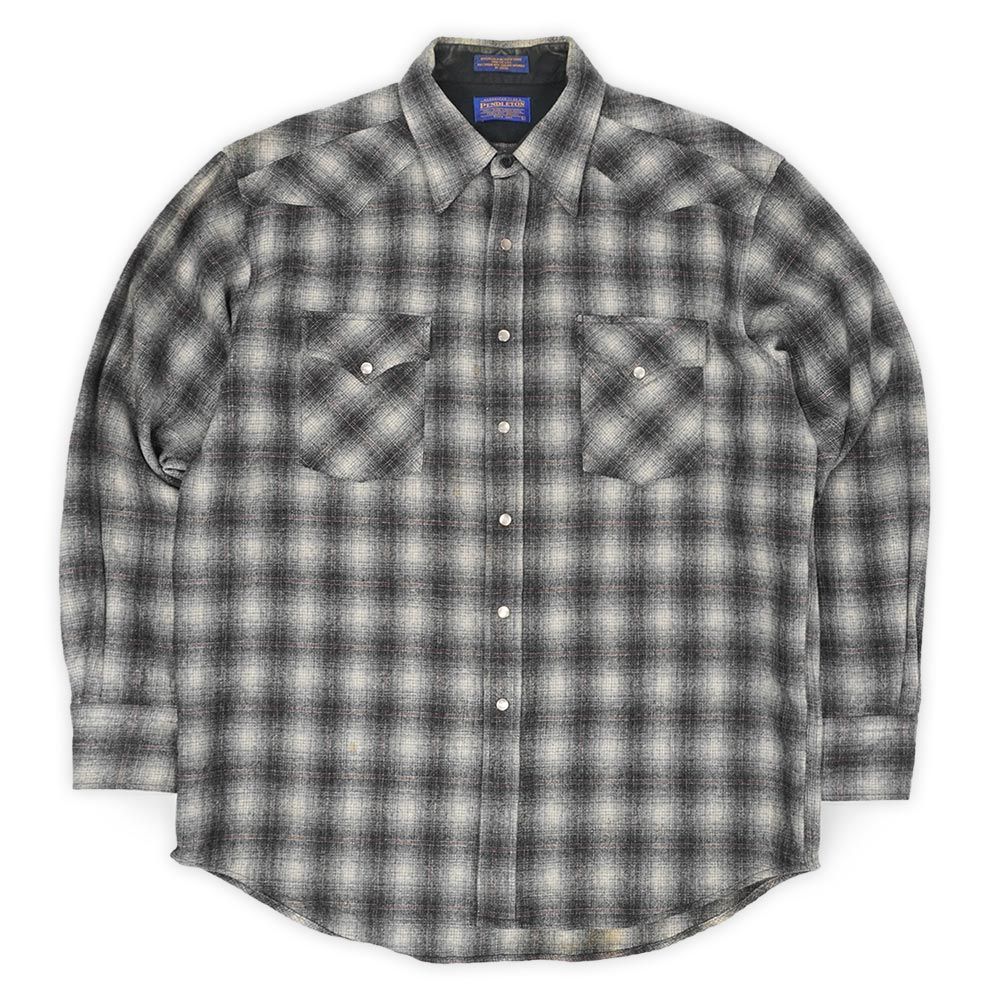ペンドルトン PENDLETON 00s 2000年代 ウールウエスタンシャツ シャドー USA FABRIC ヴィンテージ アメリカ 古着 メンズ シャツ 黒系 オンブレチェック柄 L【中古】